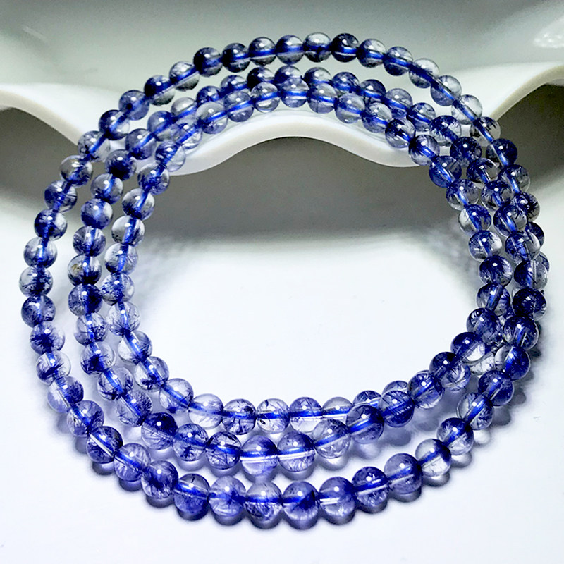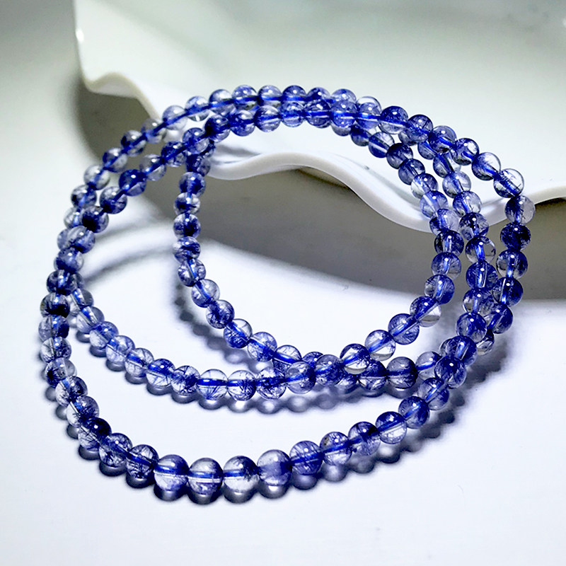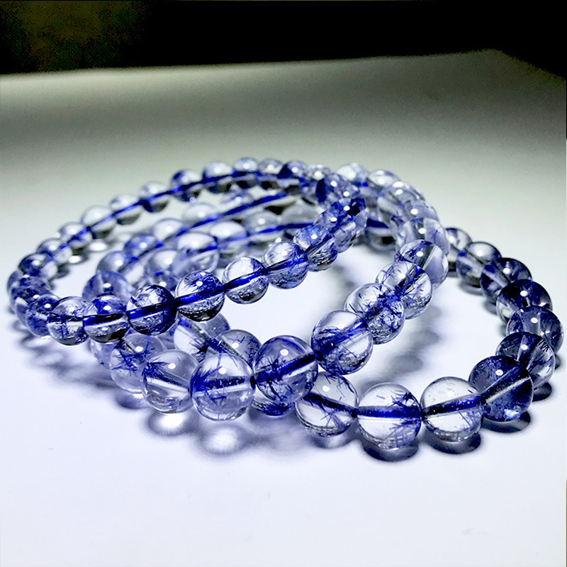 珍藏级天然蓝发晶手链蓝发水晶蓝线石蓝绒晶单圈多圈手串视频直播