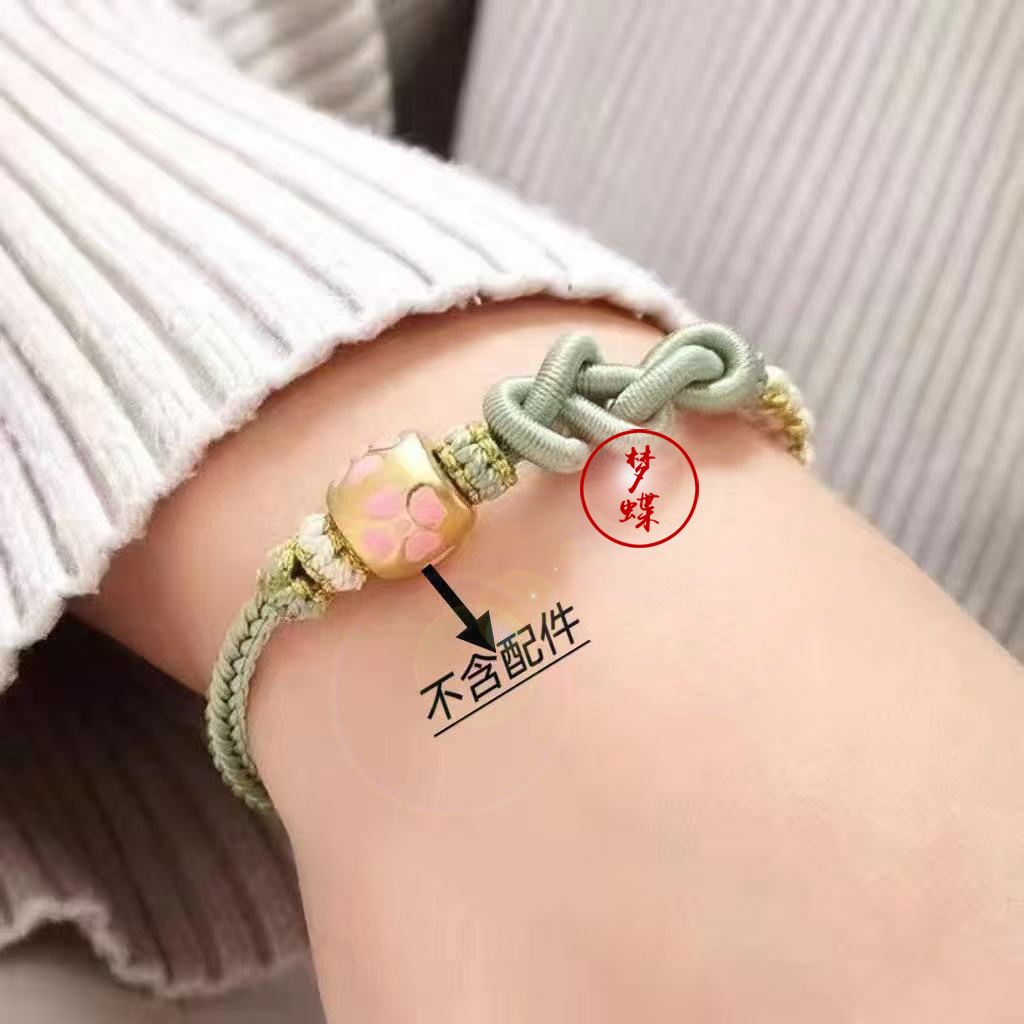 梦蝶手工编织红绳手链3mm桃花如意结半成品可穿珠diy男女情侣礼物