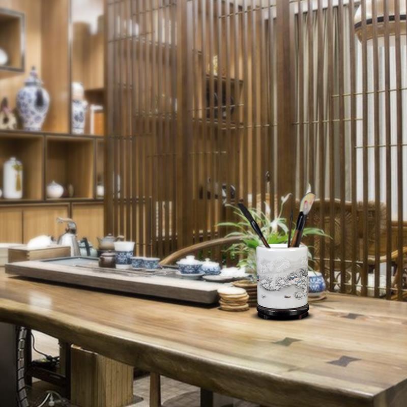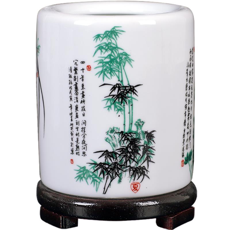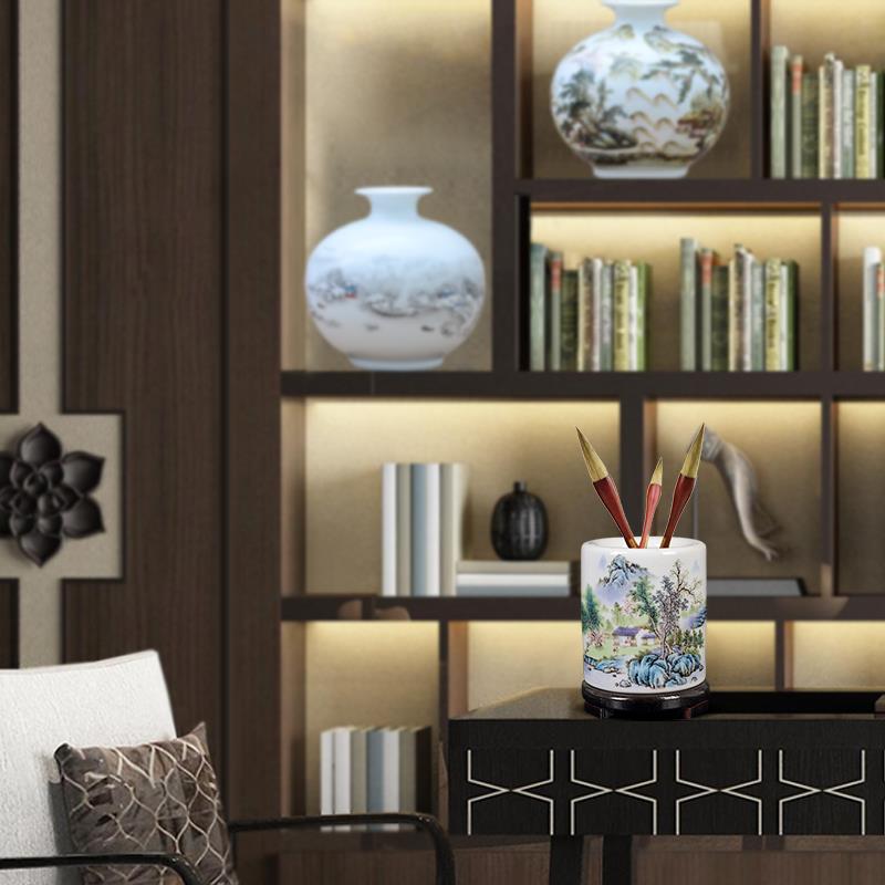 景德镇陶瓷器仿古粉彩笔筒创意时尚办公室书房装饰摆件教师节礼品
