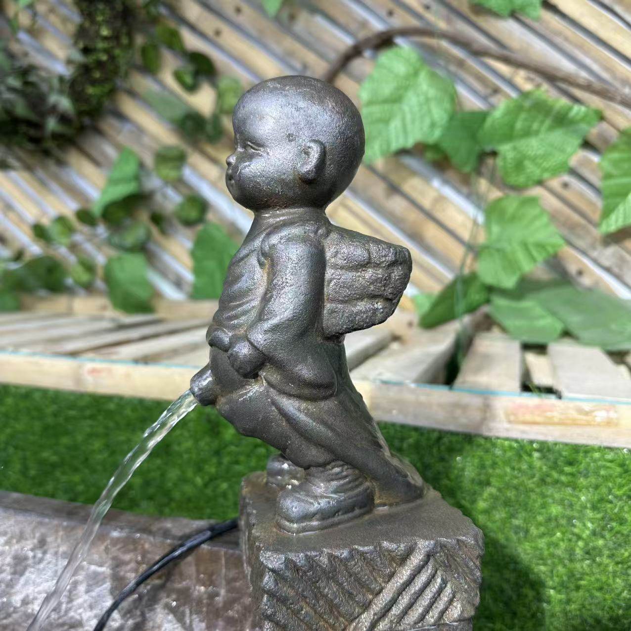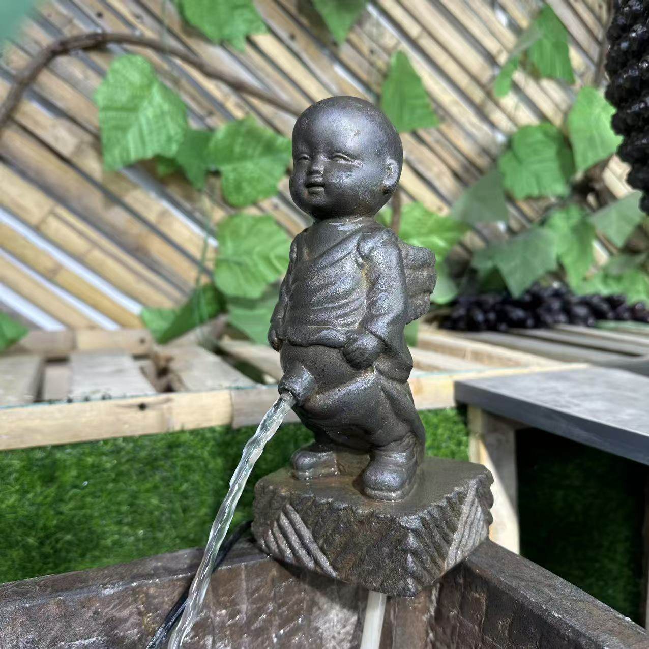 中国风禅意风流水鱼缸造景专用流水小和尚摆件