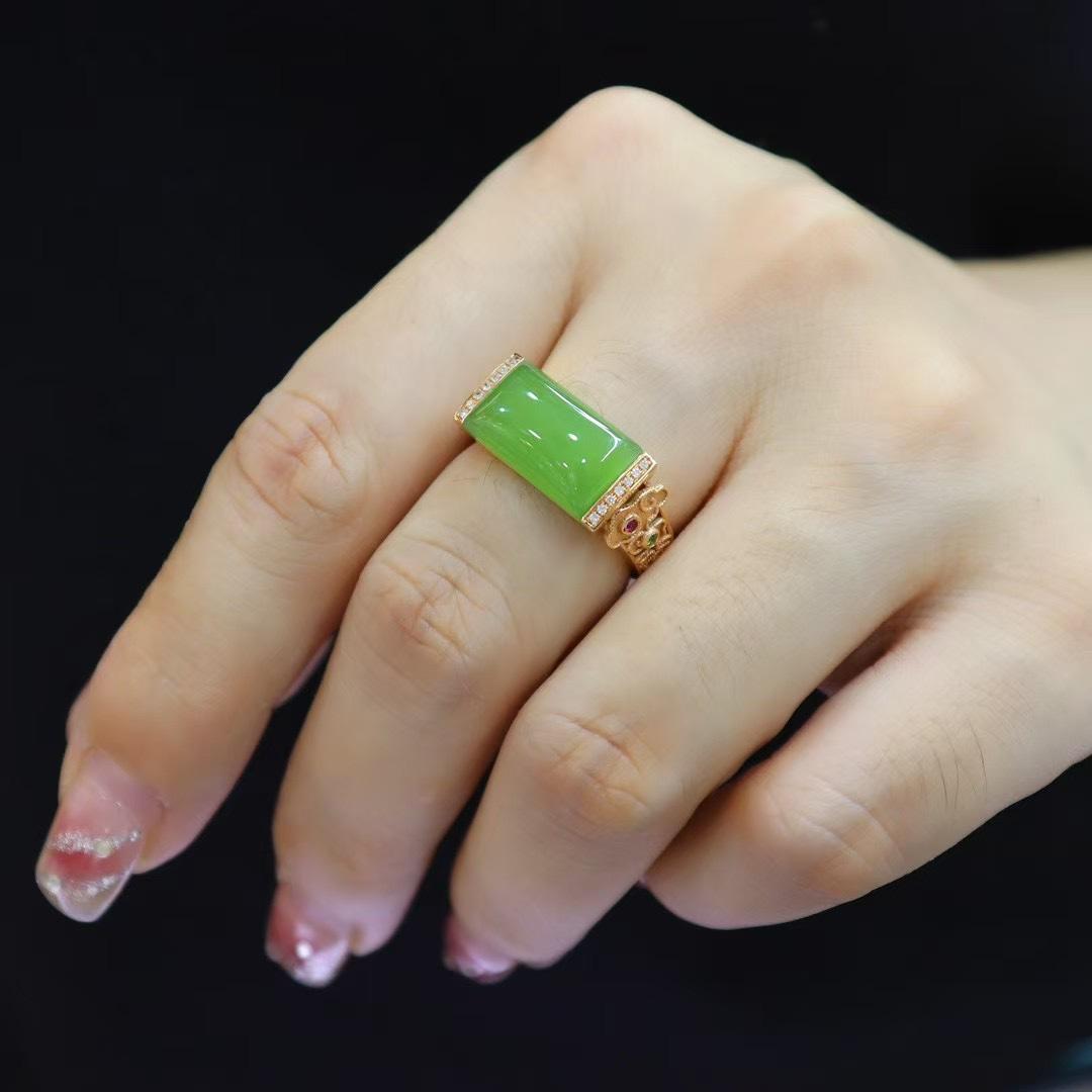 元旦新品天然和田玉吊坠女镂空苹果绿碧玉马鞍镶18k金项链送老婆