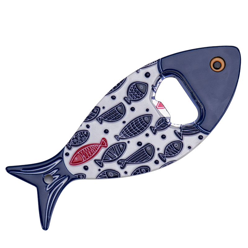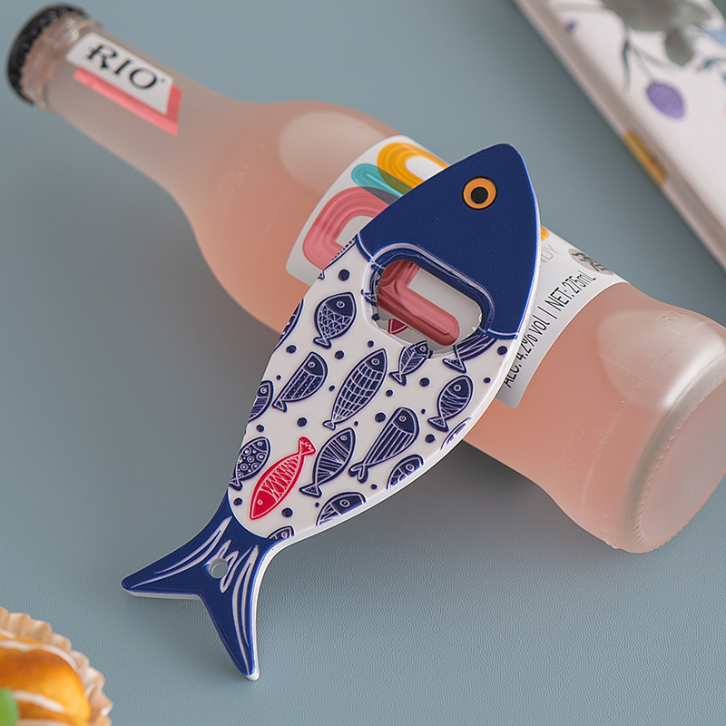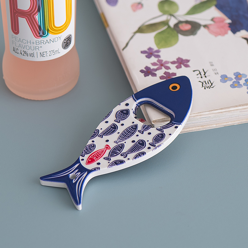 新款创意鱼开瓶器冰箱贴陶瓷材质浮雕质感烫金工艺立体感强冰箱贴