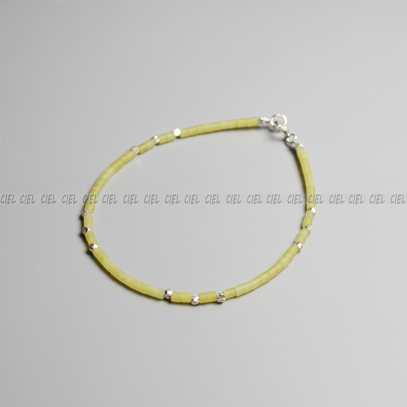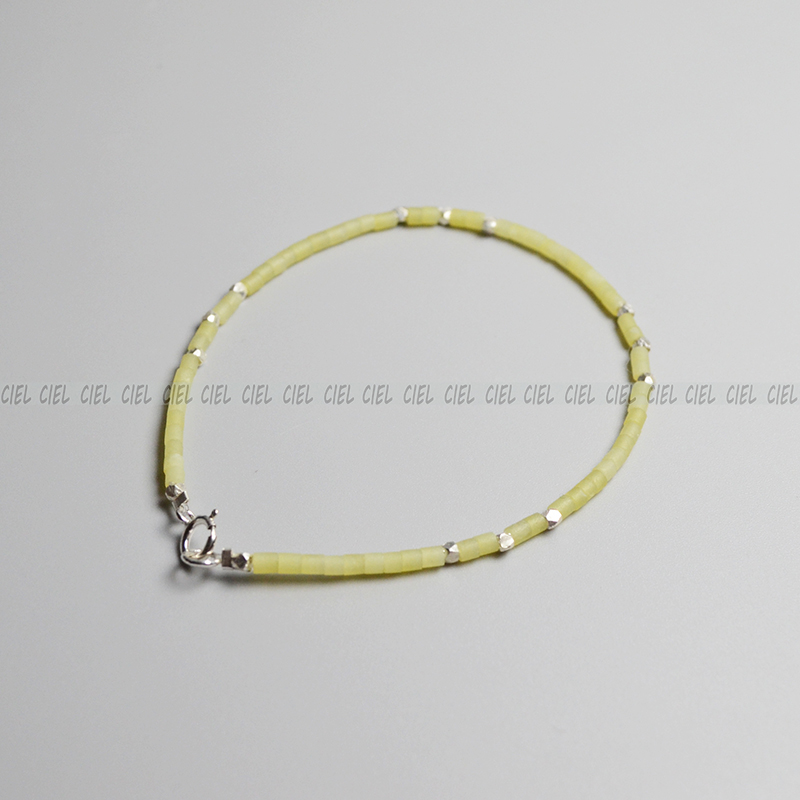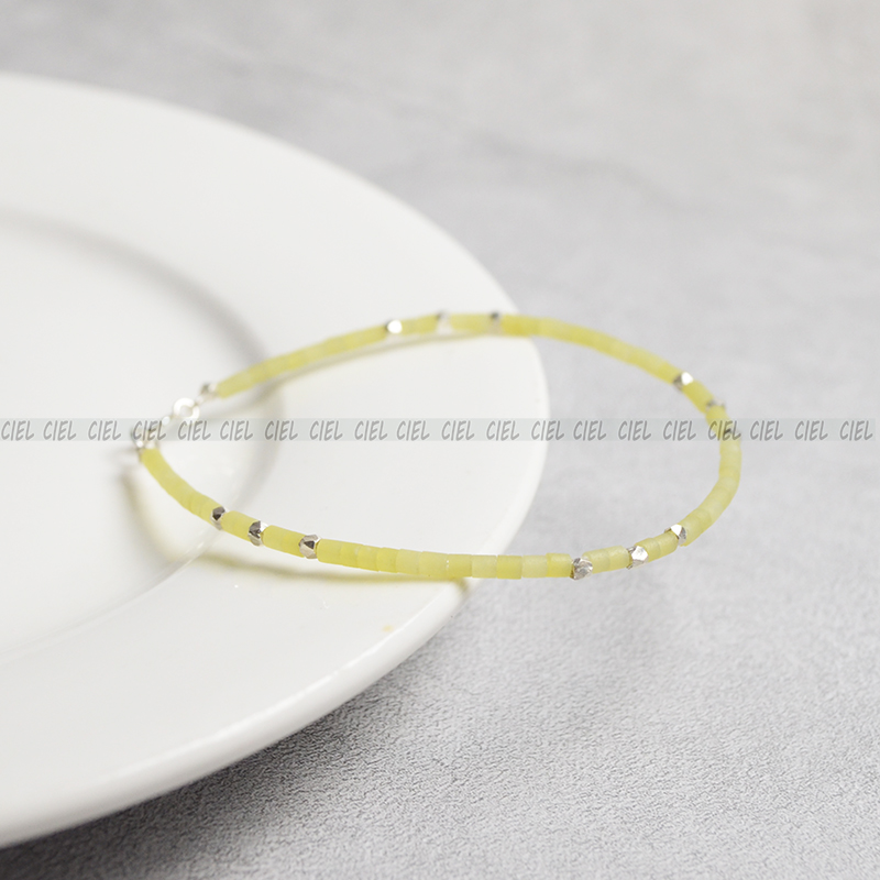 Ciel原创手工天然黄玉手链极细2mm管珠925纯银脚链项链显白