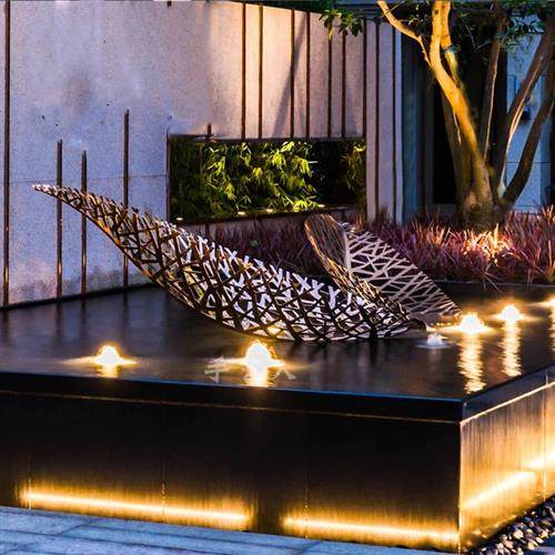 不锈钢叶子摆件镜面水景镂空树叶廊架雕塑酒店售楼处地产装饰美陈