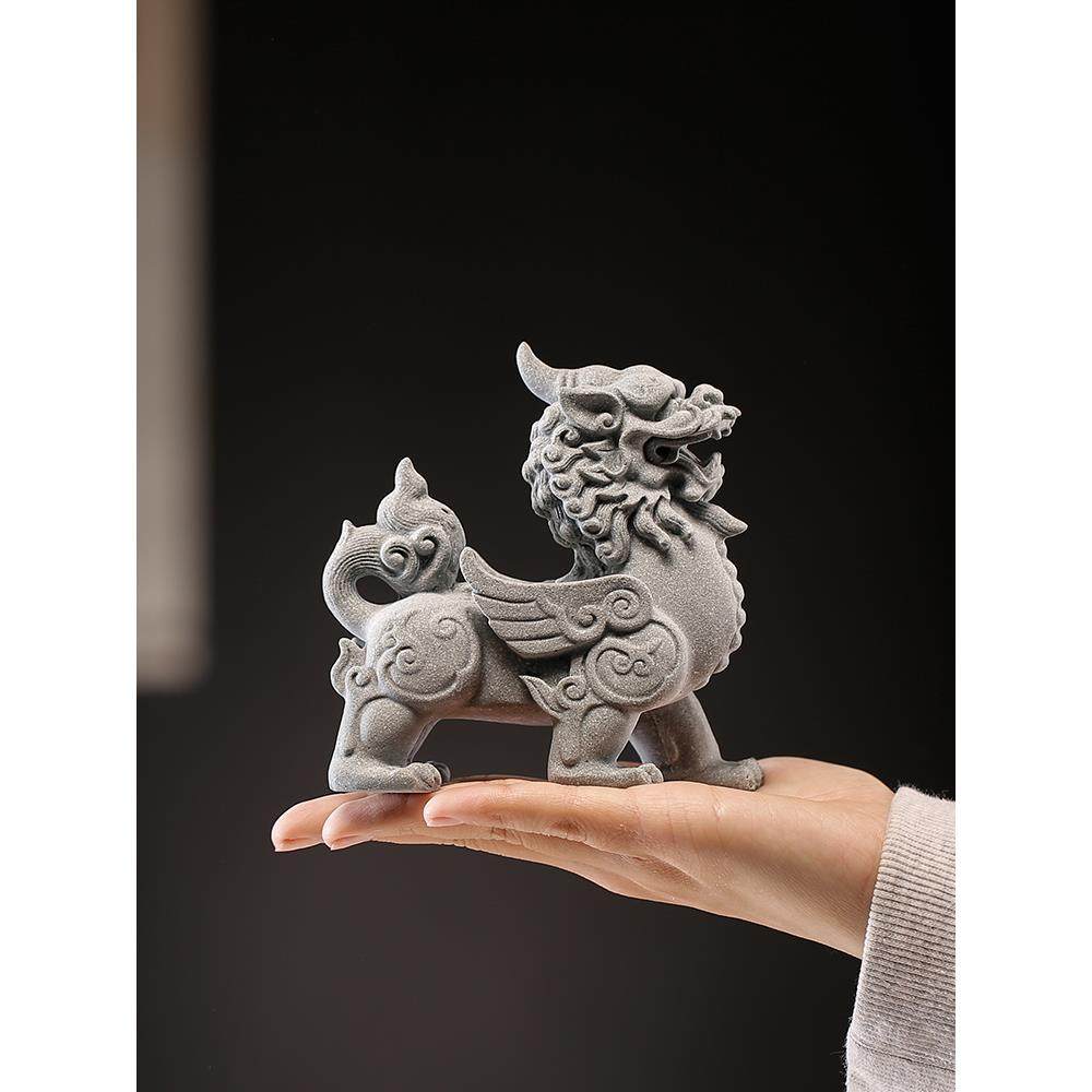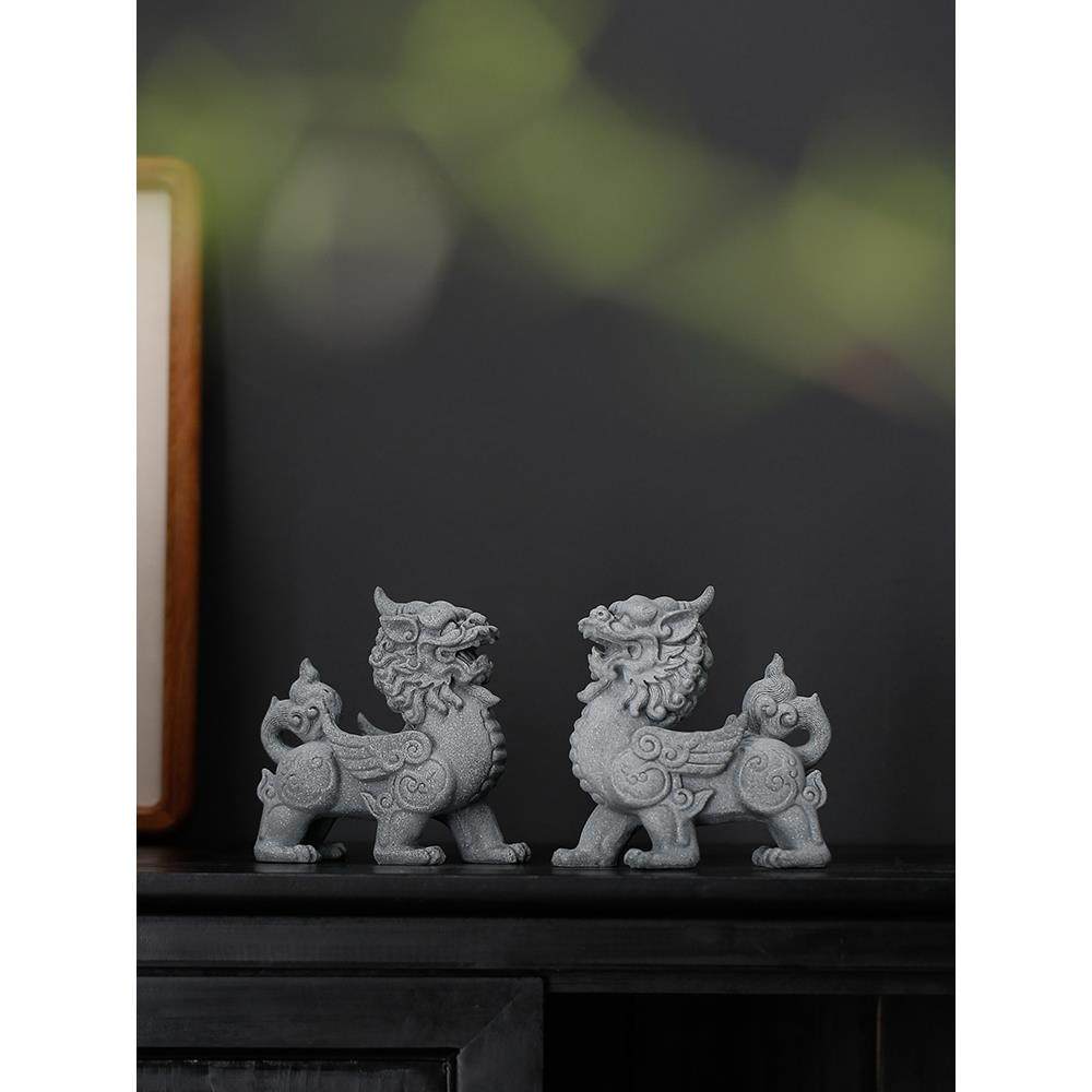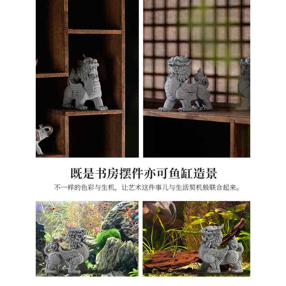 新款创意独角兽对绿色砂岩茶宠物茶饰品鱼缸景观中玩国客厅酒电柜