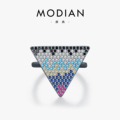 MODIAN摩典S925纯银奢华满钻戒指女暗黑系复古几何个性百搭指环