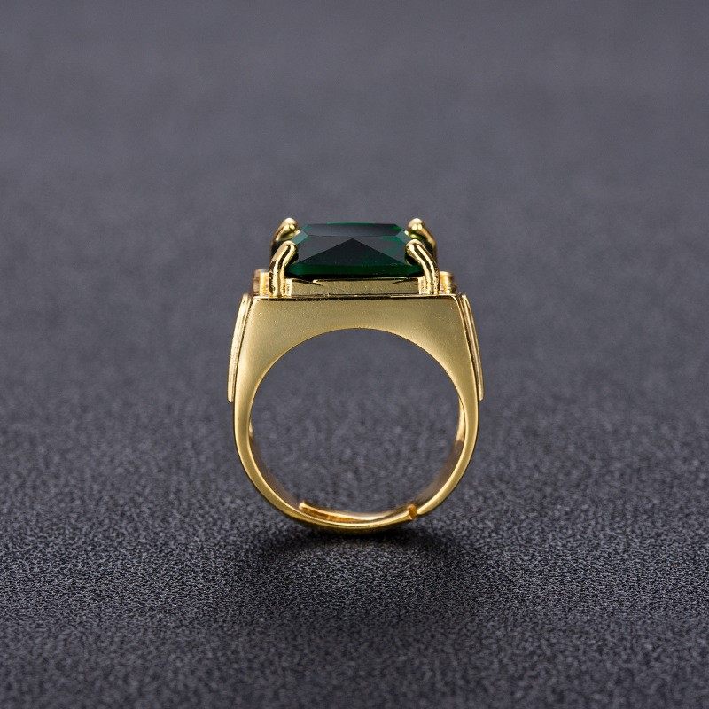 流行热卖祖母绿色戒指男复古风方形民族戒指镀黄金开口戒指指环