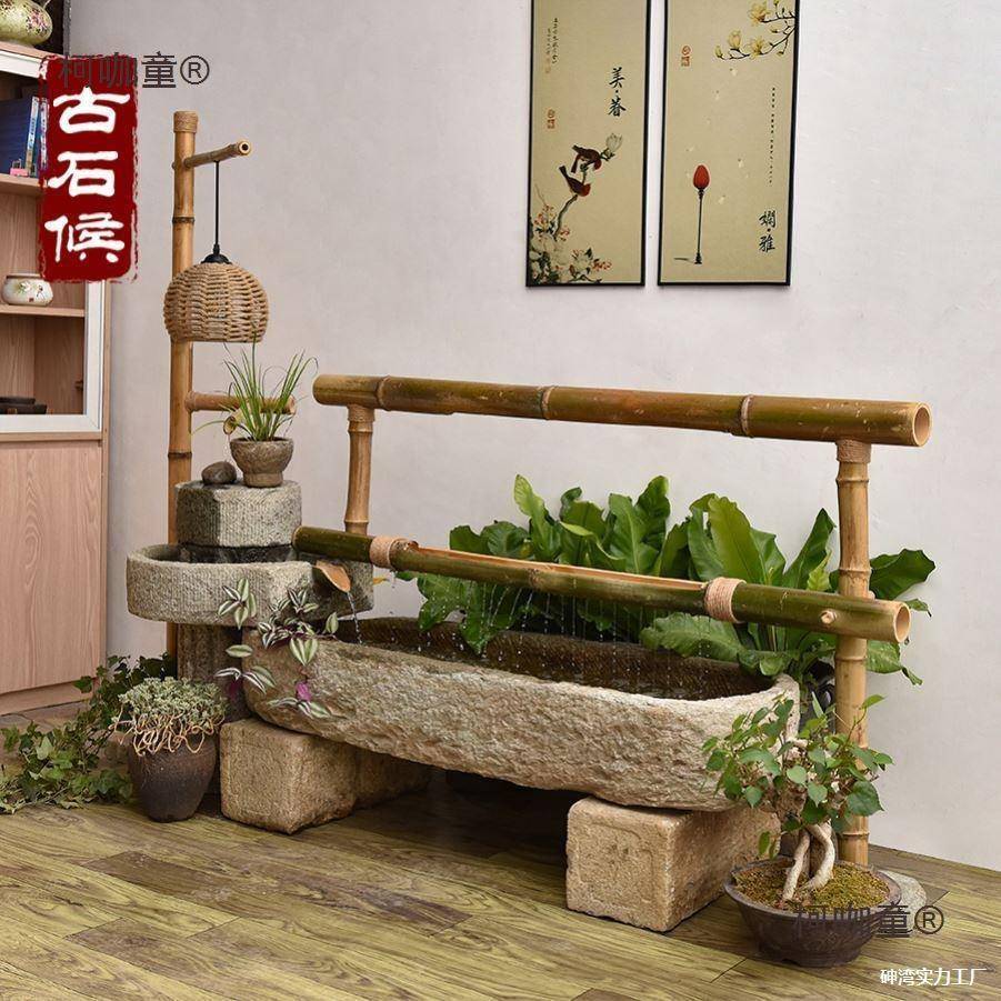 石石槽流水摆件造景组合内户器景观柯咖童鱼缸庭外院养鱼池室阳台