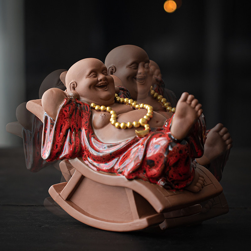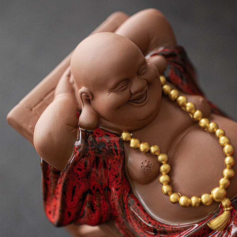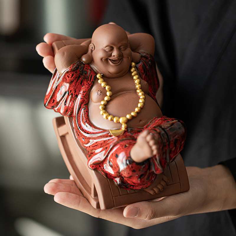 炼器大肚弥勒佛摆件陶瓷工艺品招财笑佛客厅办公室茶桌禅意装饰品