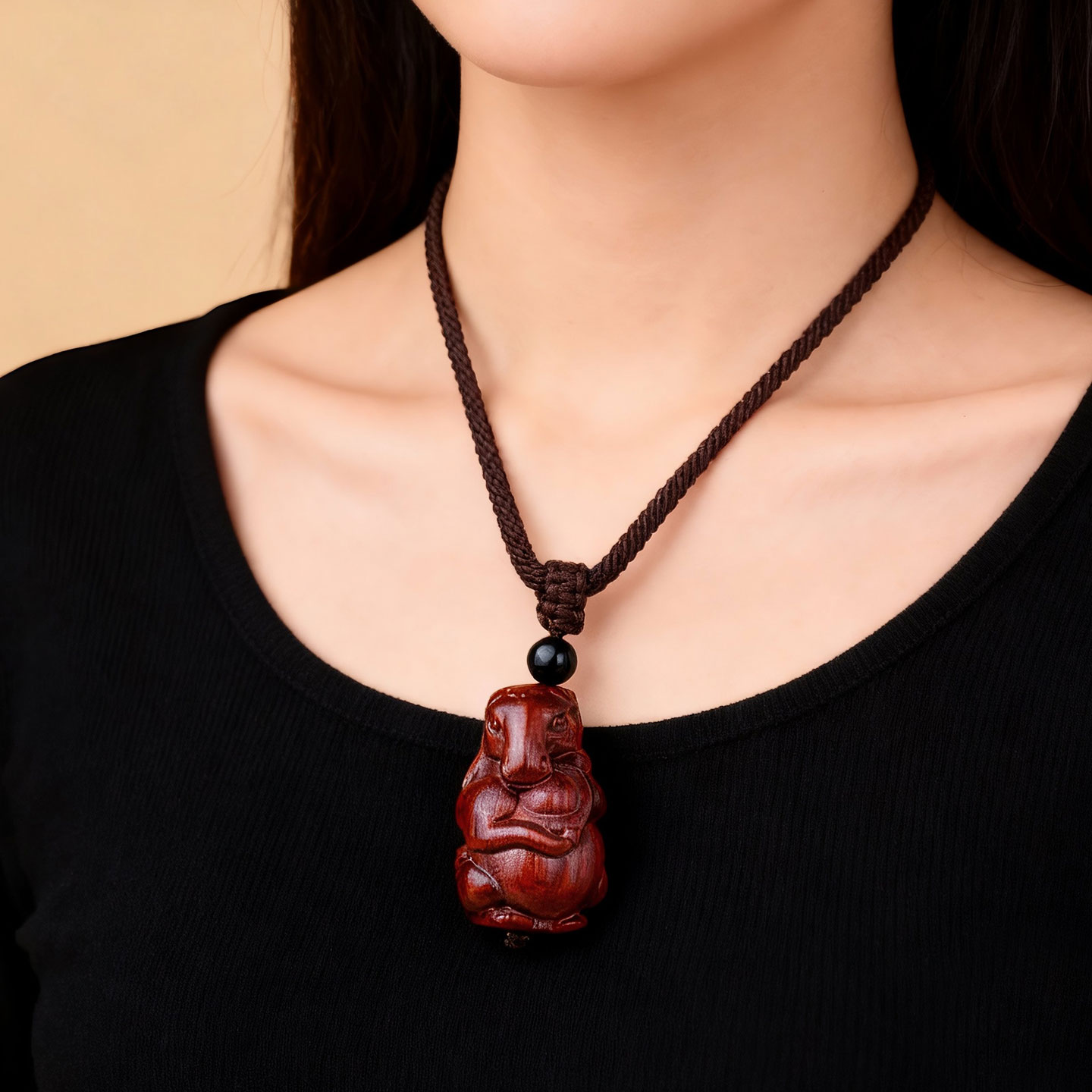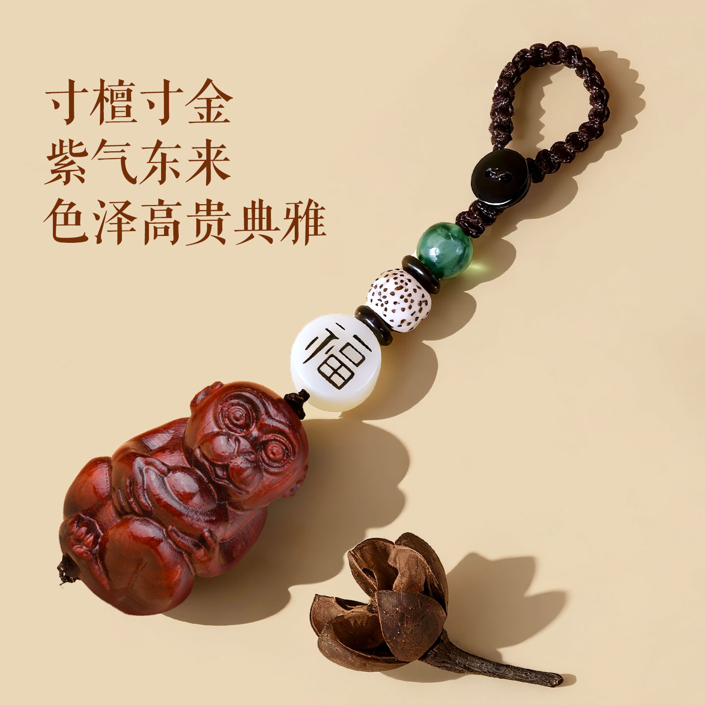 紫檀木生肖猪吊坠十二生肖属猪护身符挂件木质项链钥匙扣饰品男女