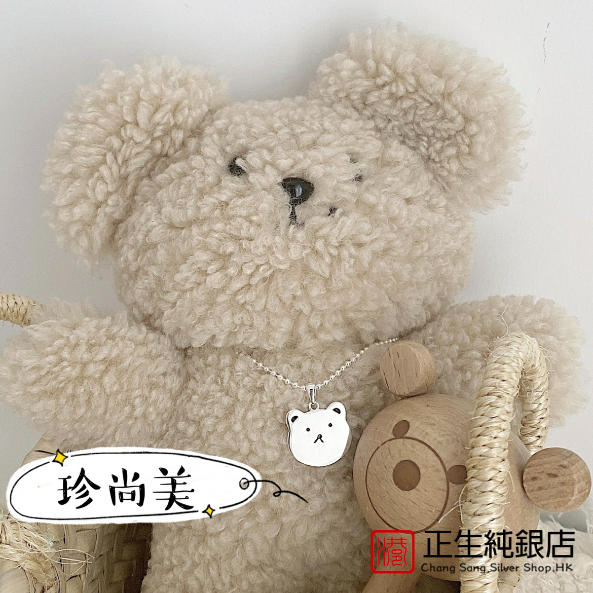香港正生纯银大热佛珠小熊情侣亲子女儿童宝宝生日男项链刻字定制