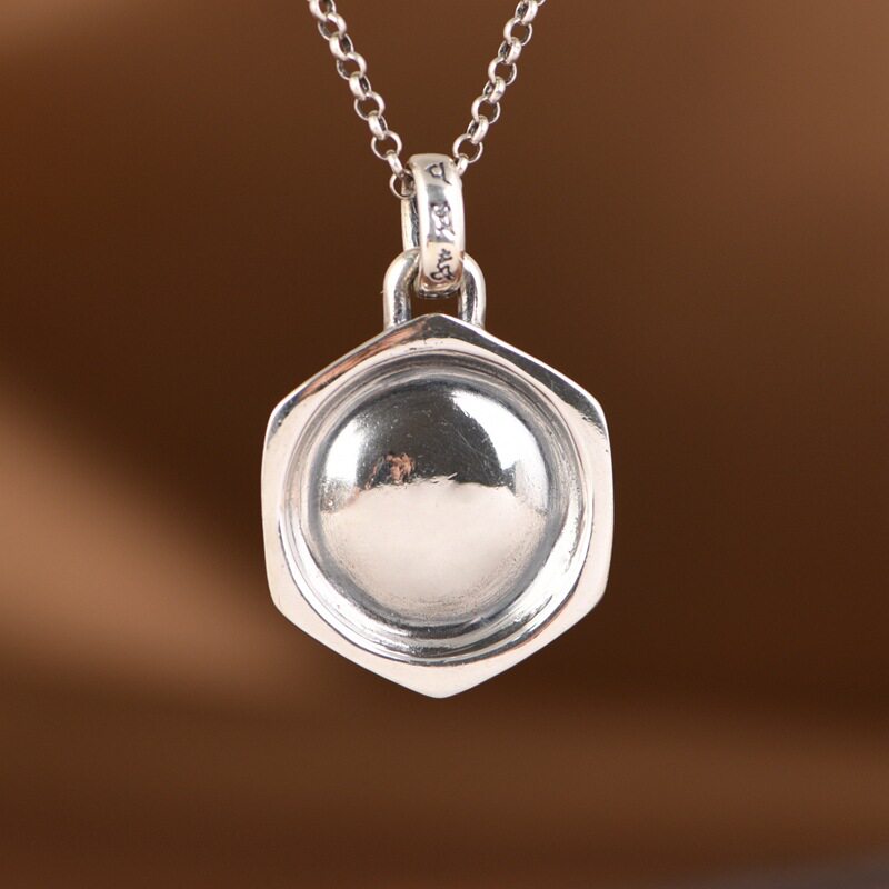纯银吊坠男女财神项链坠复古工艺扎基拉姆绿度母头像实心圆牌挂件