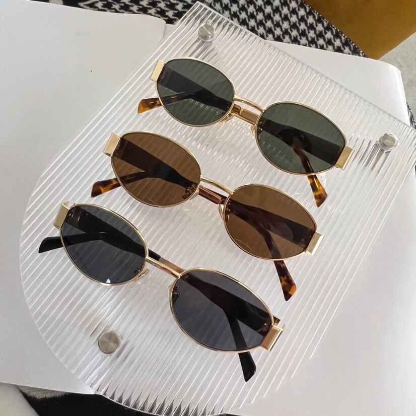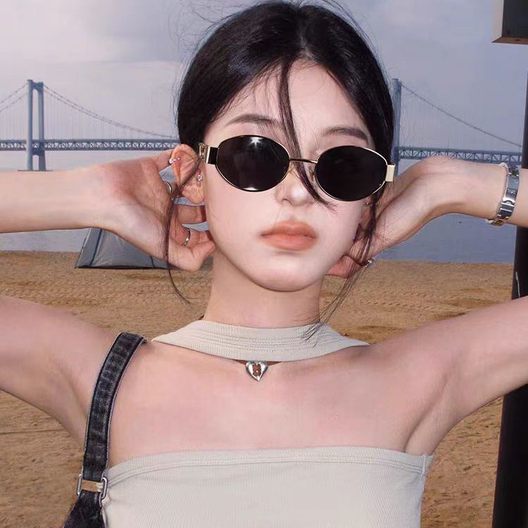 猫眼墨镜女款高级感2025新款金属小脸椭圆形复古小框茶色太阳眼镜