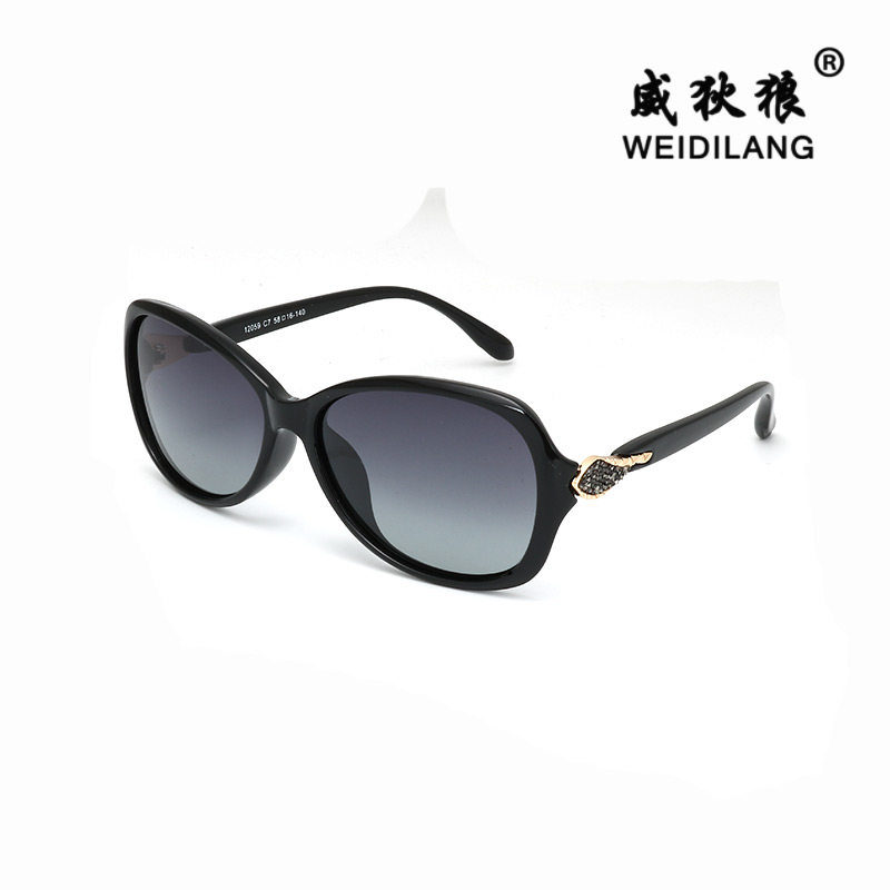 双色偏光女式太阳镜女中小框新款闪钻墨镜彩黑色防紫外线圆脸高清