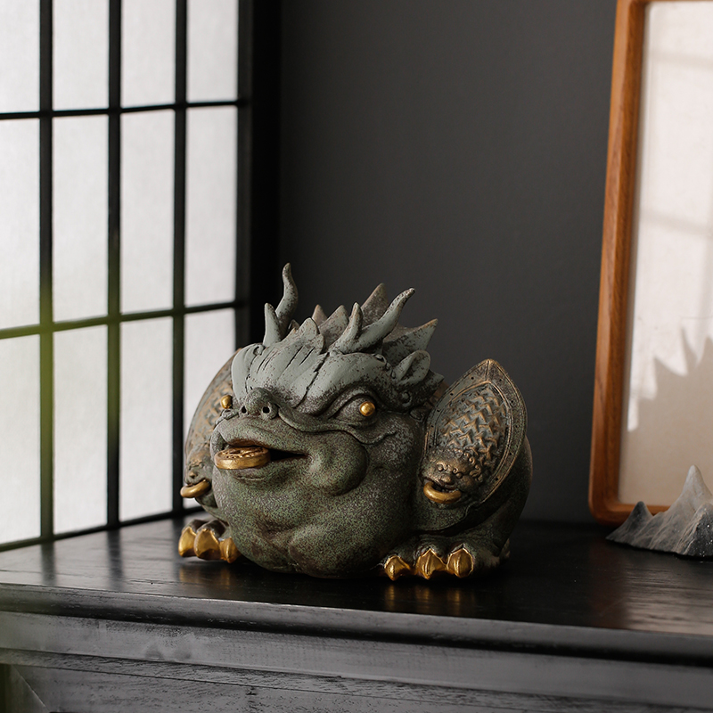 创意招财金蟾陶瓷工艺品送礼品中式家居客厅办公室桌面店铺装饰品