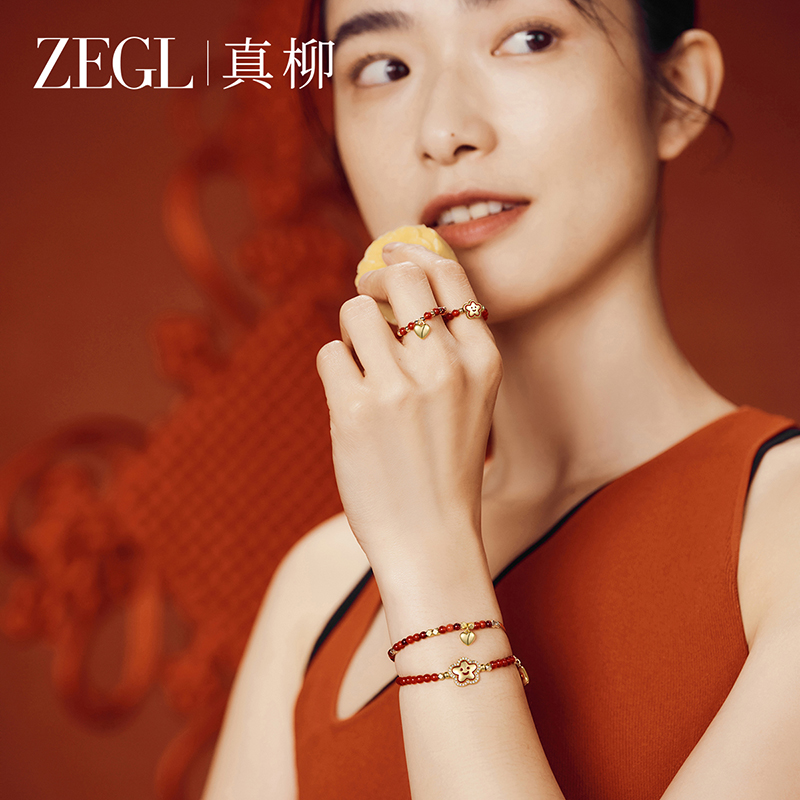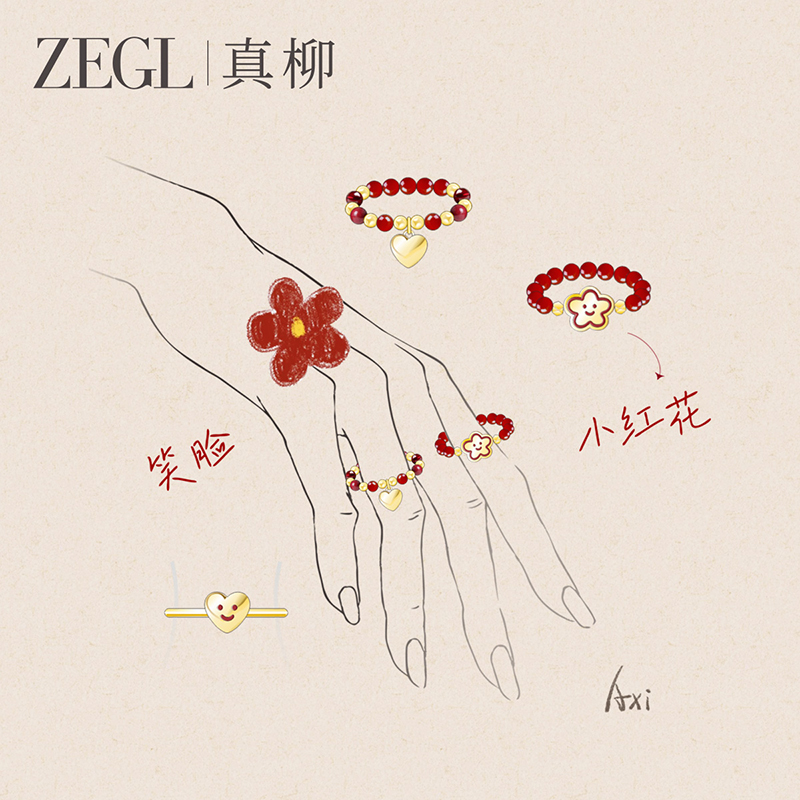 ZEGL设计师圣诞新年小红花天然红玛瑙秋冬戒指女小众串珠指环礼物