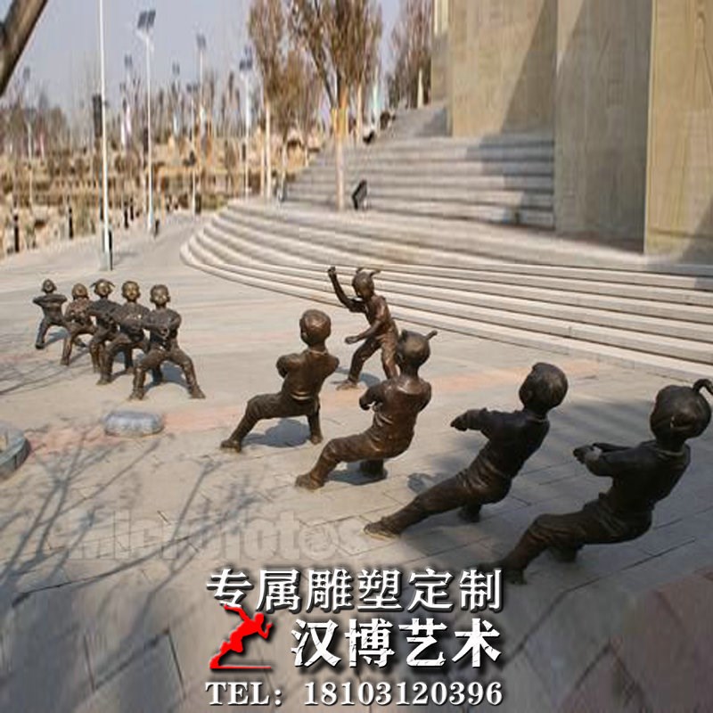 户外民俗仿铜小孩拔河主题人物情景雕像玻O璃钢广场园林景观雕塑