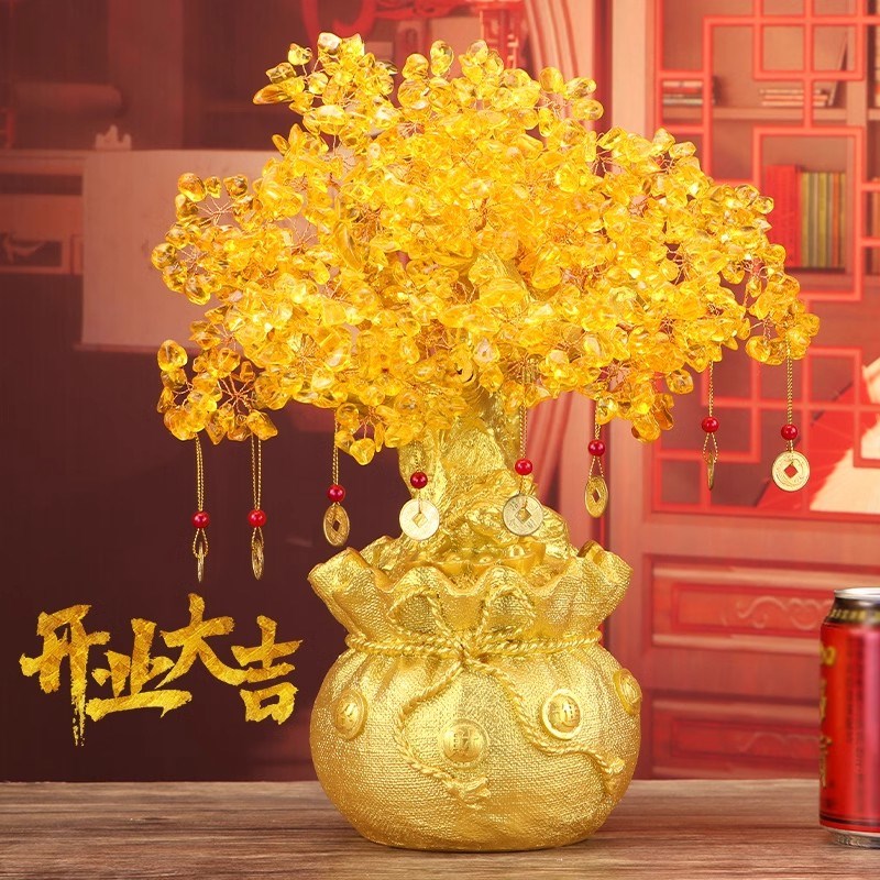 水晶发财树成品h招财摆件家居摇钱树酒柜新年电视柜装饰品开业礼