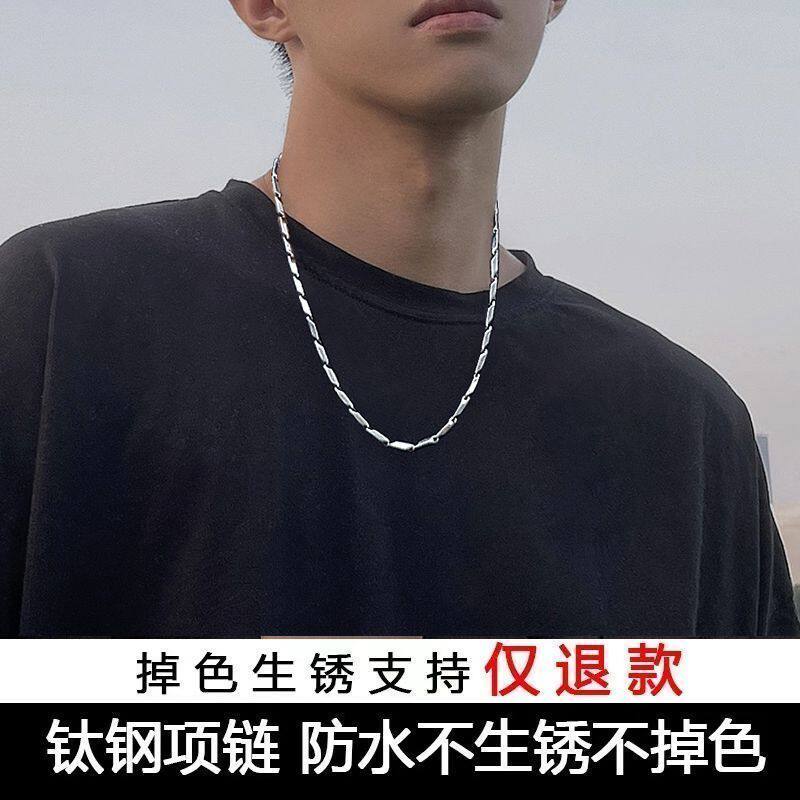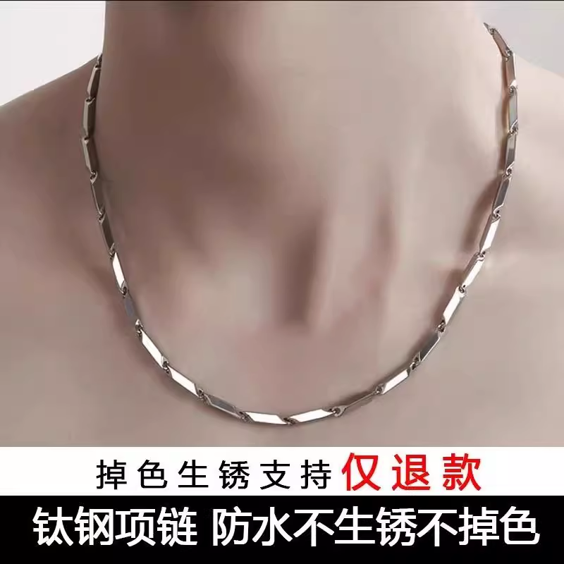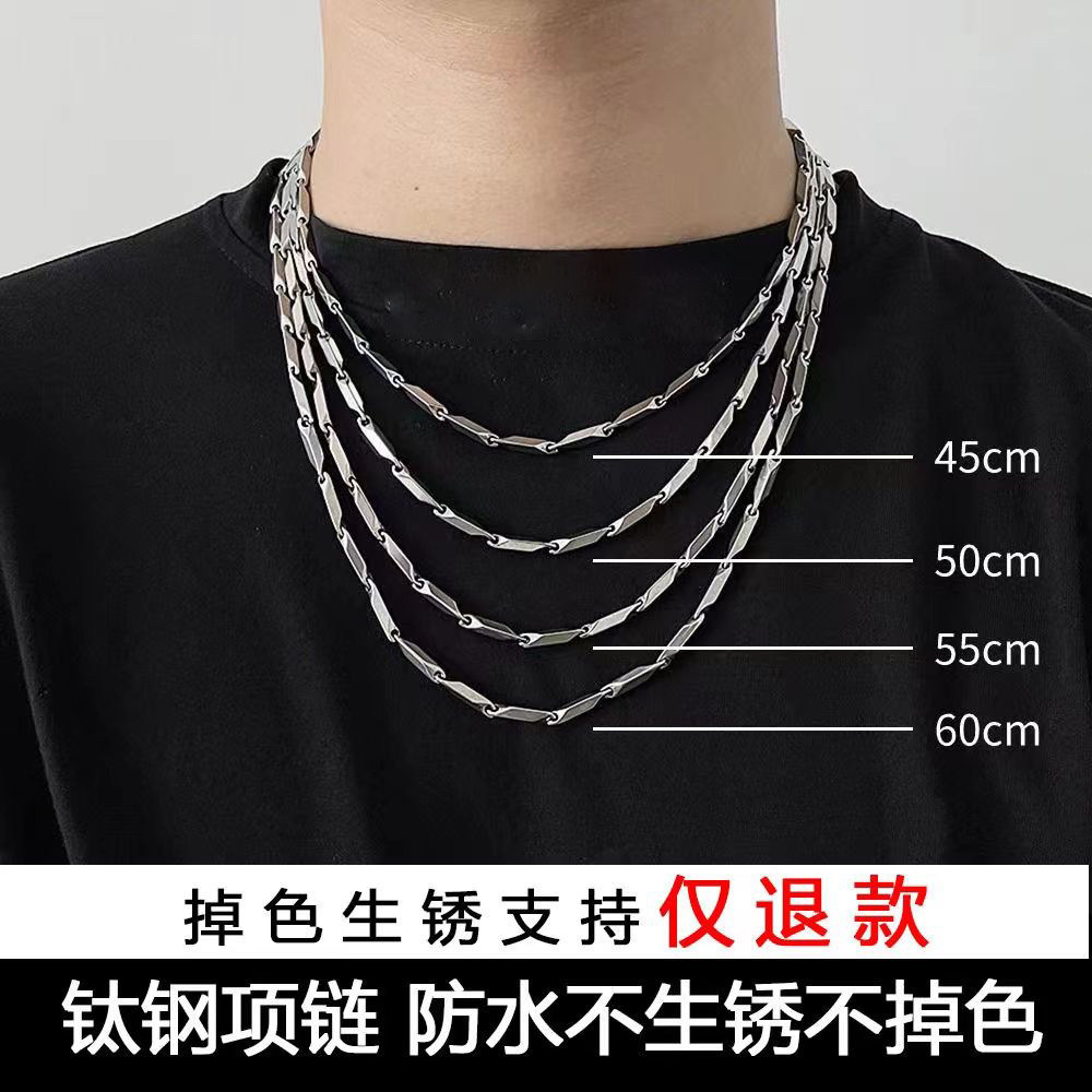 菱形钛钢项链男款潮牌百搭小众设计高级感锁骨链嘻哈毛衣链配饰品