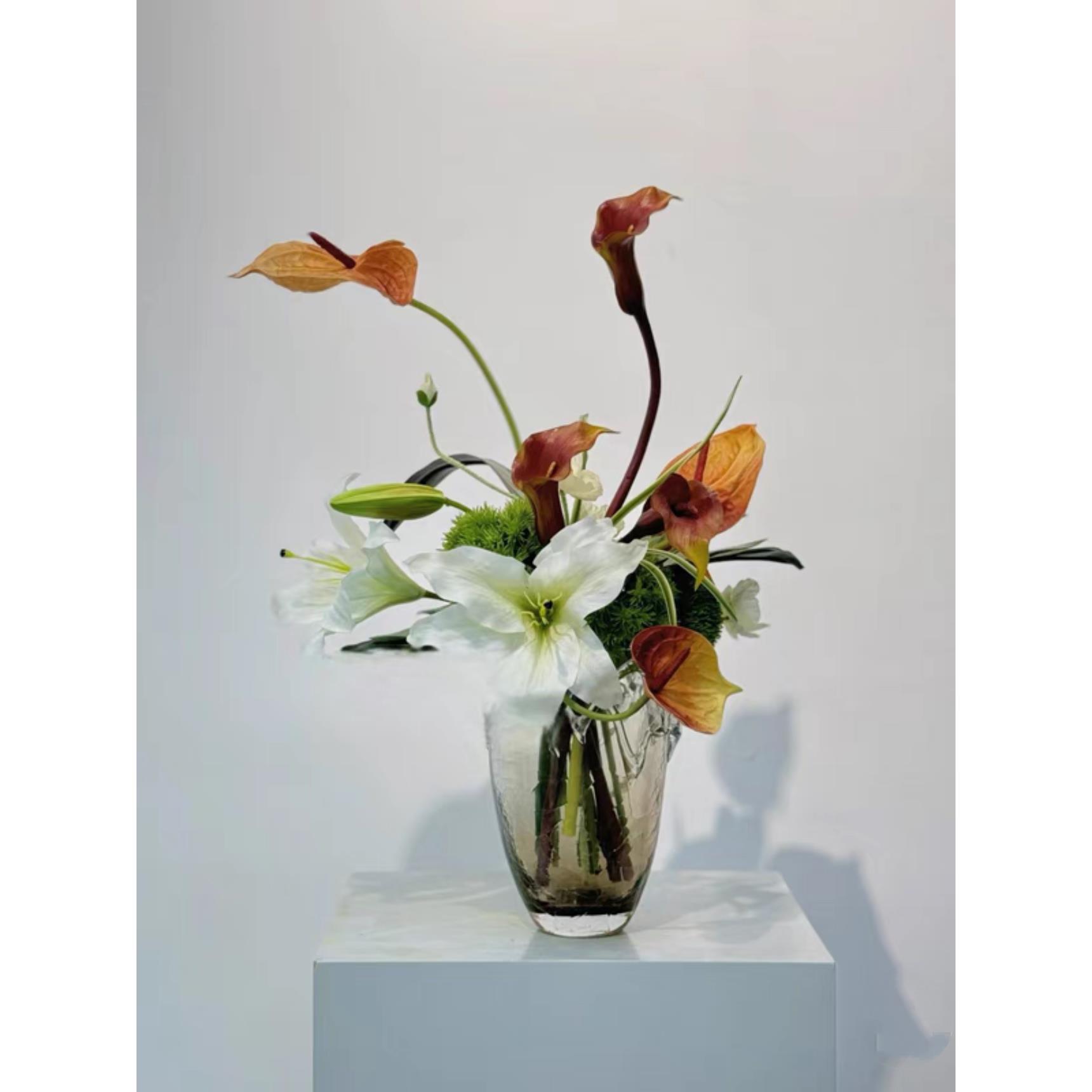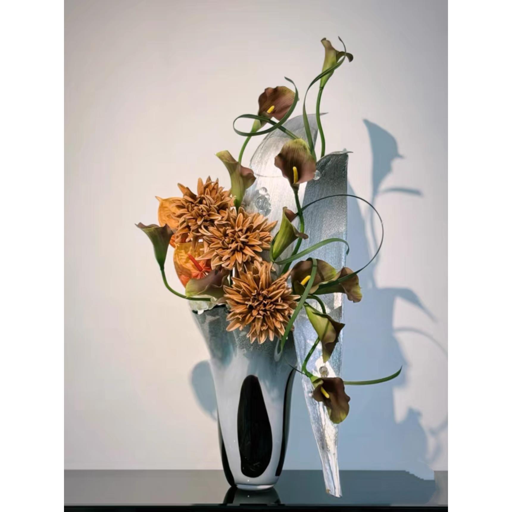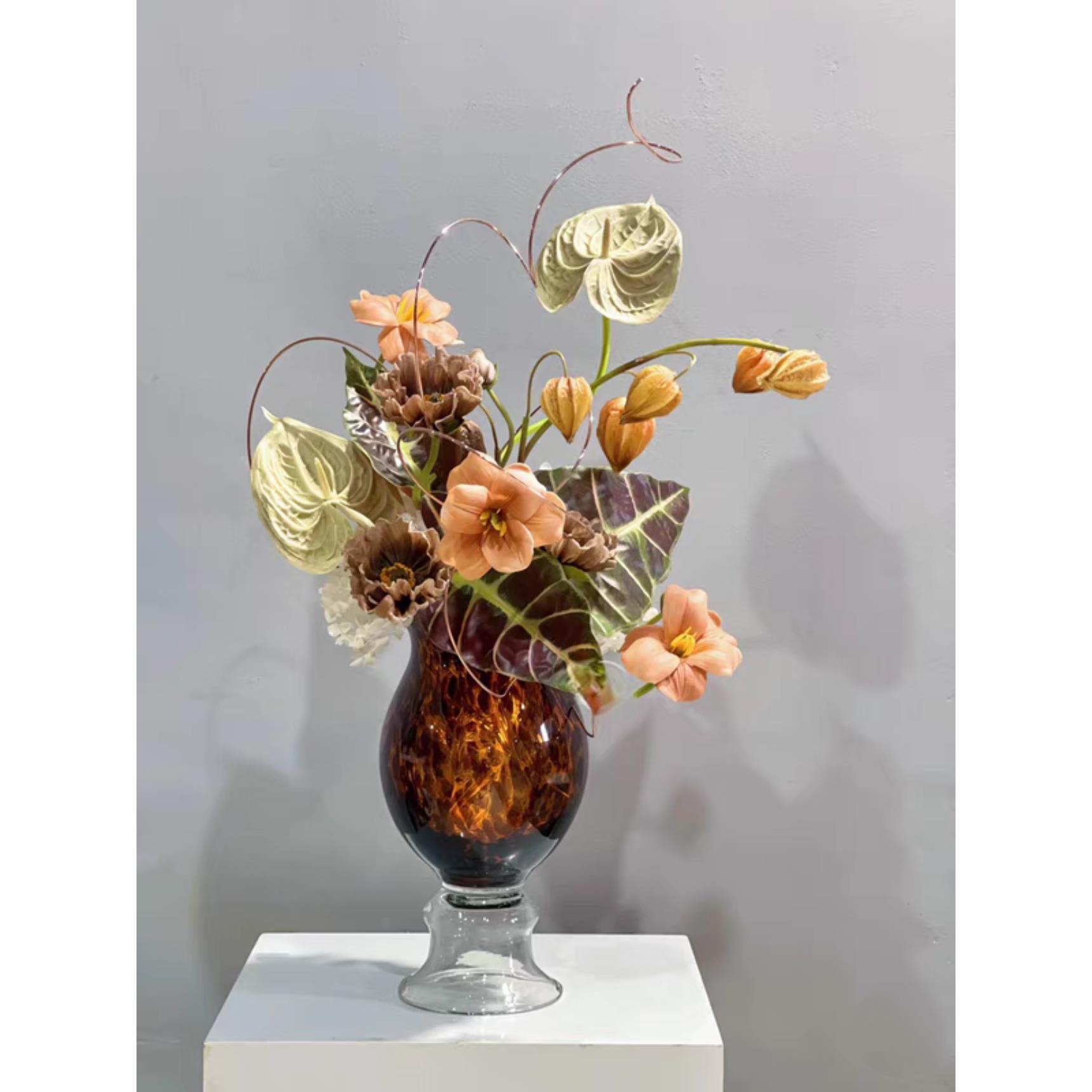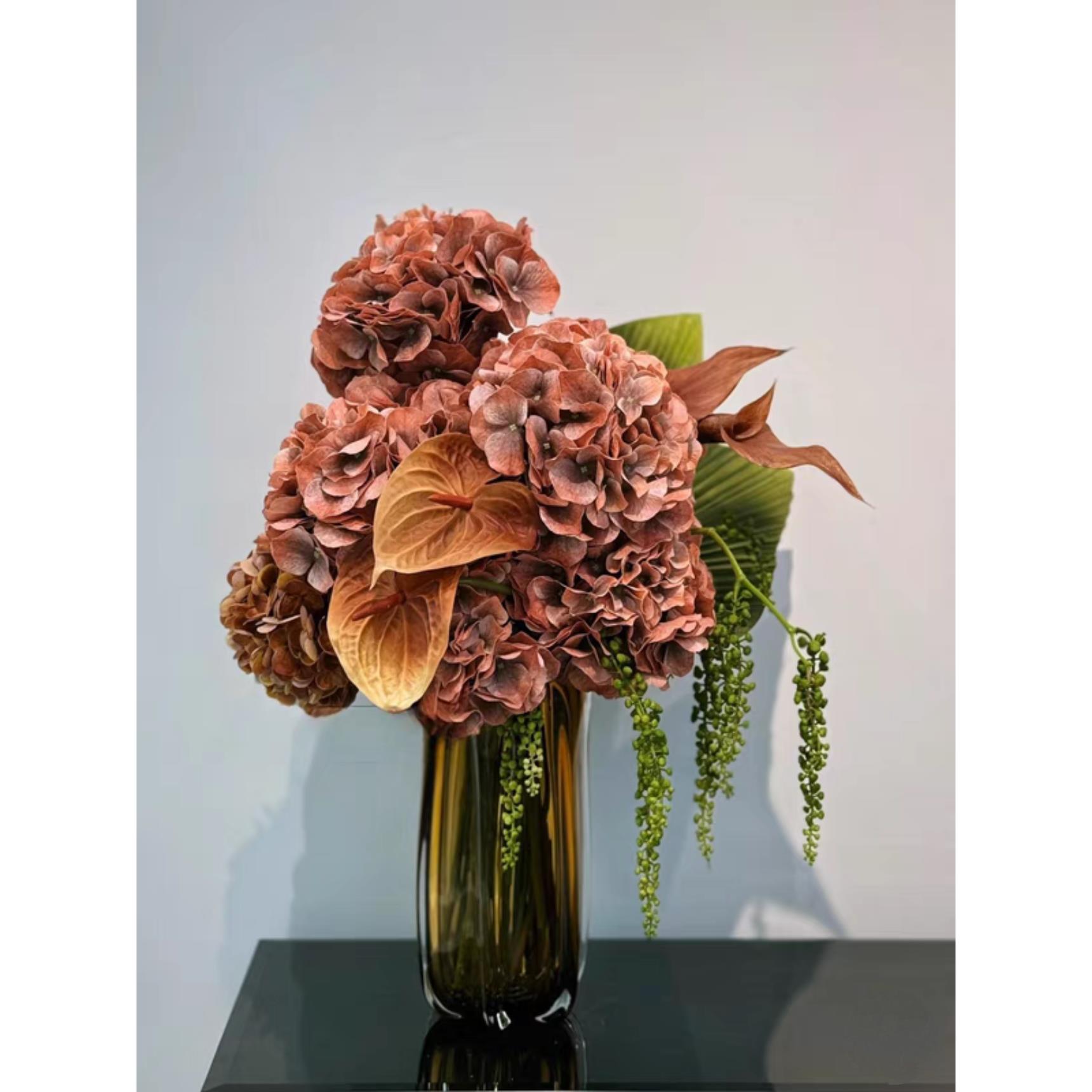 橙色系成品真花艺现代轻奢中古样板房餐桌茶几高档真花艺摆件