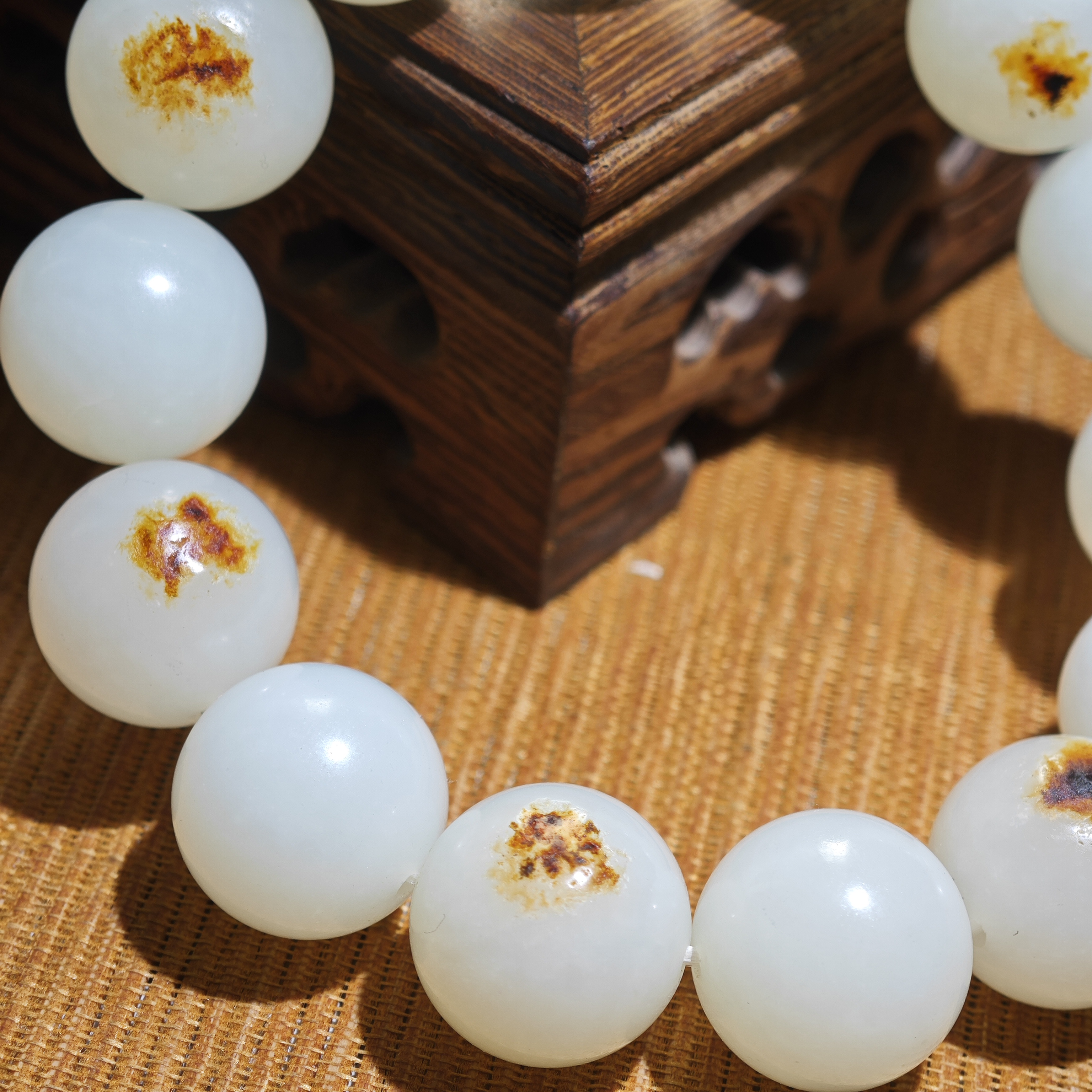正宗新疆和田玉籽料红皮白肉16mm圆珠手串洒金红皮天然皮保真男款