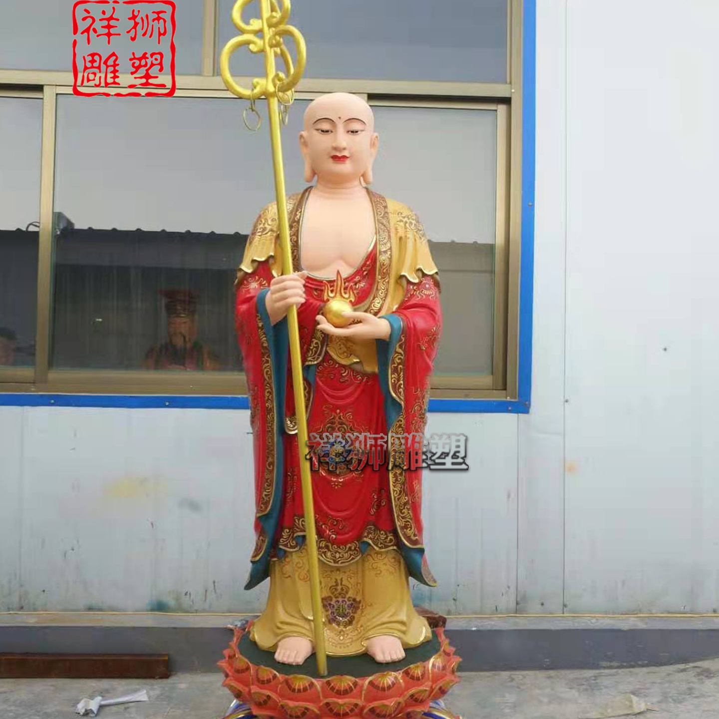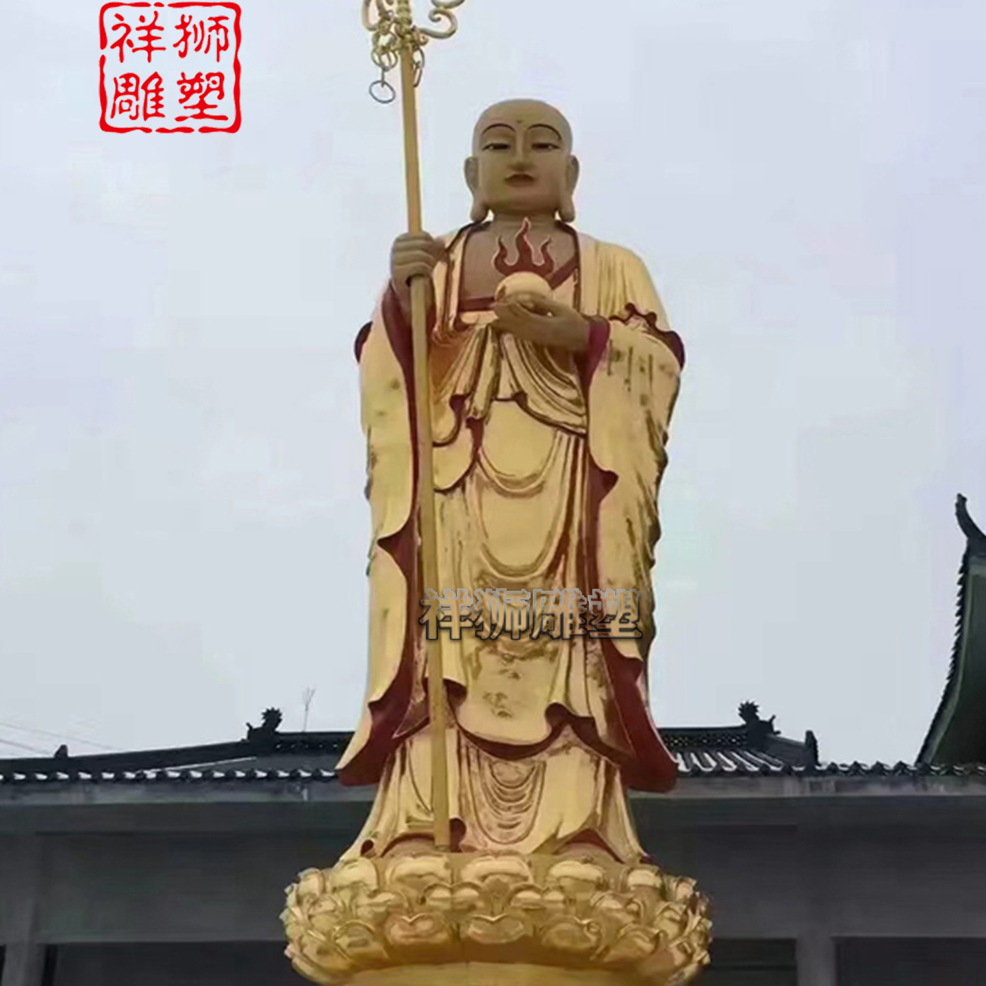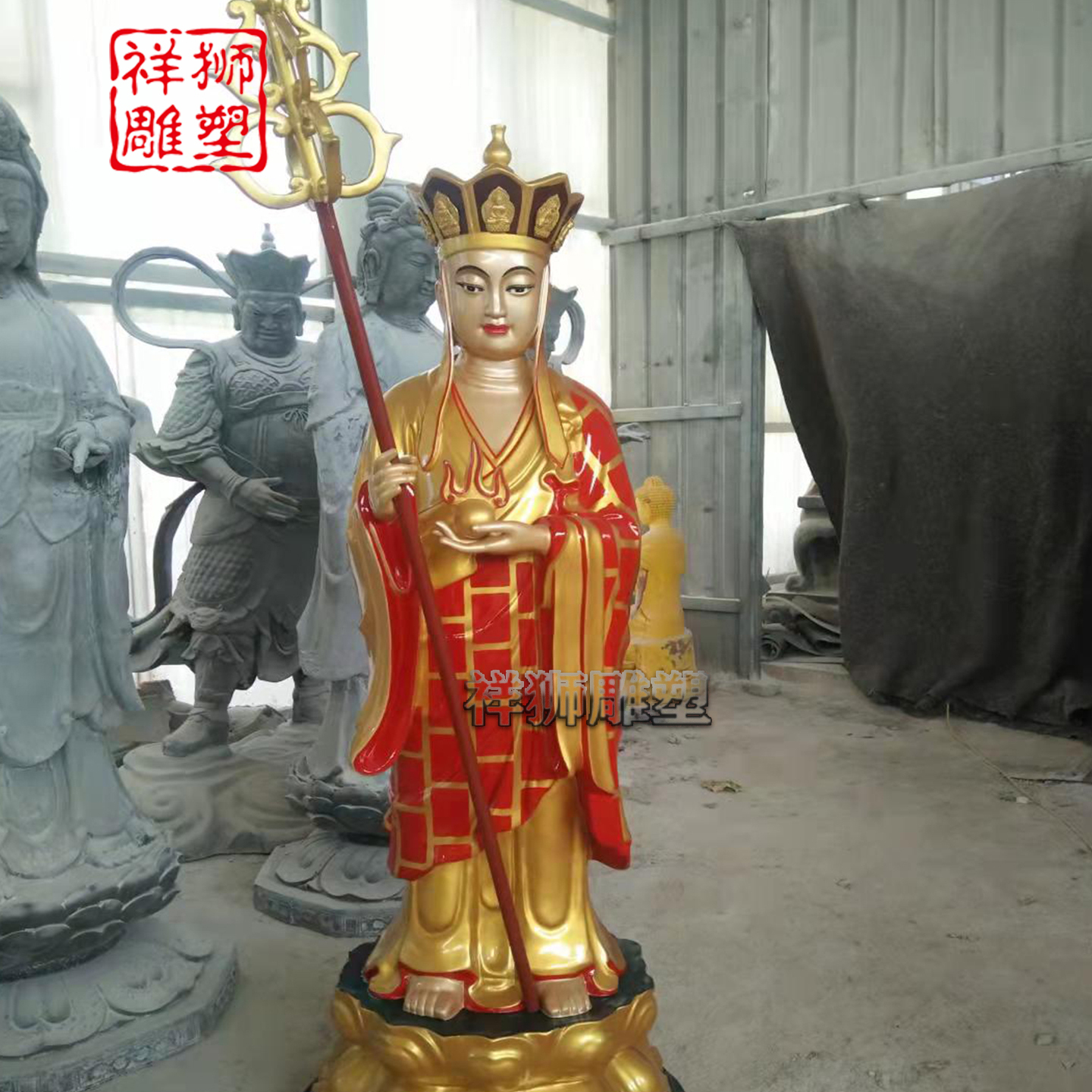 铜雕工厂彩绘纯铜站姿地藏王菩萨佛像佛堂供奉摆件制作祥狮雕塑