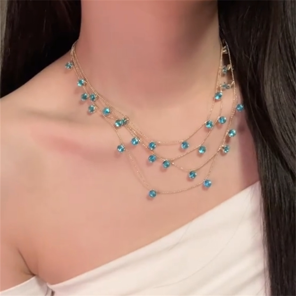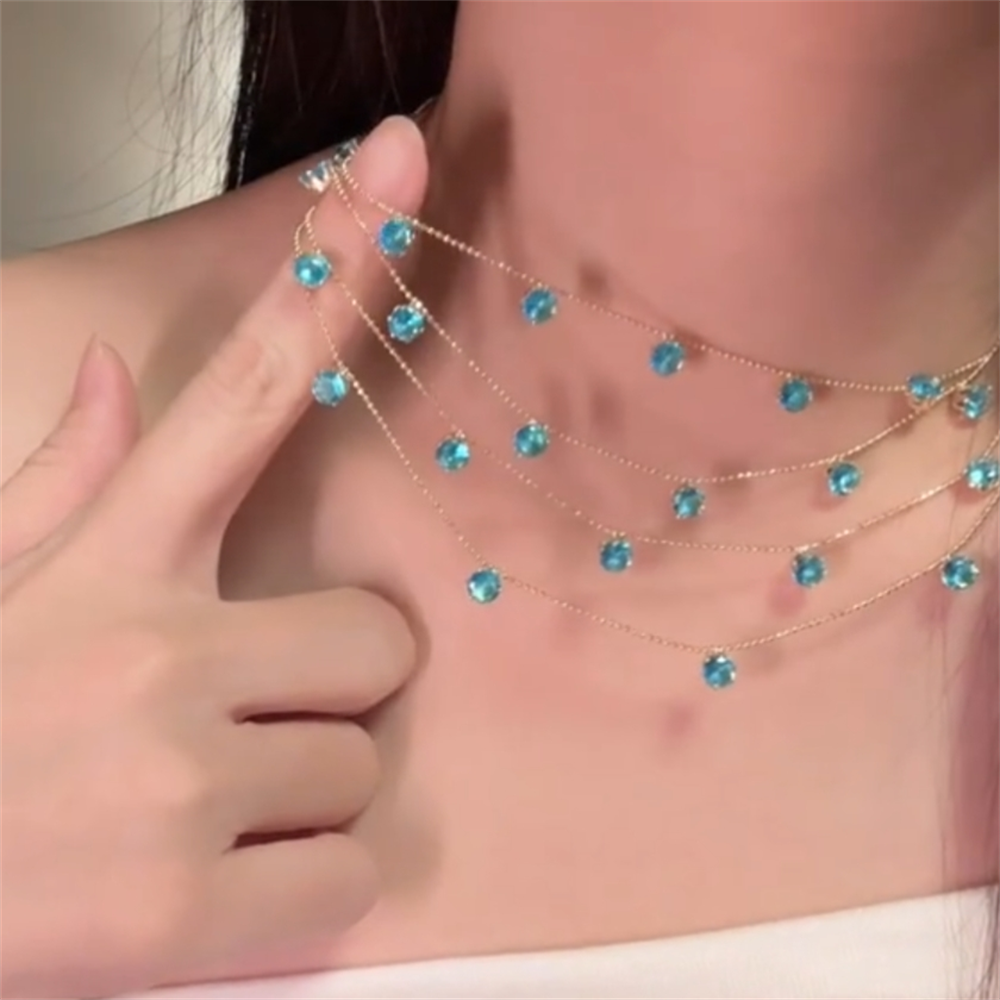 zoozmomo蓝色满天星锆石项链女多层叠戴颈链轻奢高级感辣妹锁骨链