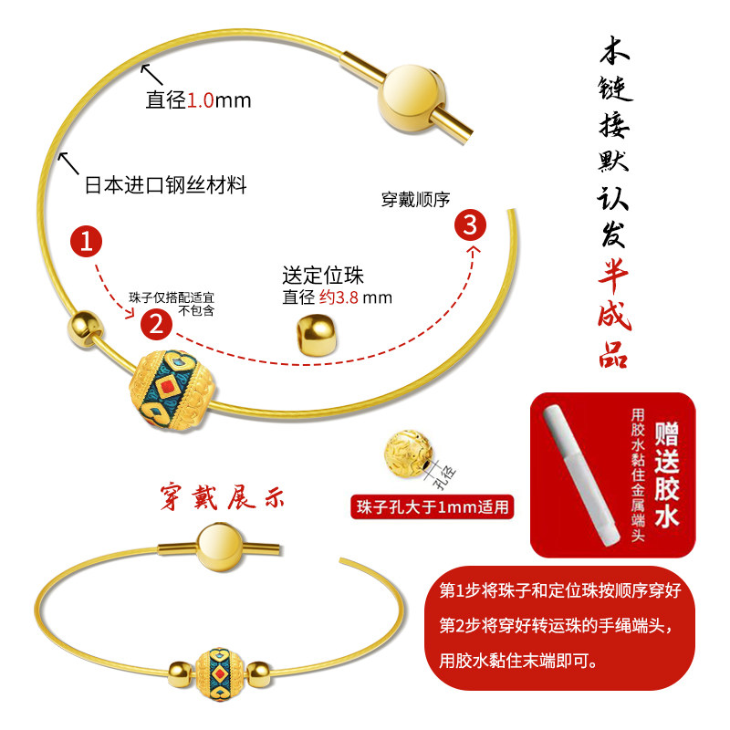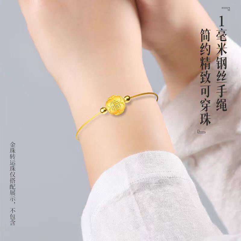 细款钢丝手绳女可穿小孔黄金转运珠玉珠珍珠万能手镯半成品手链