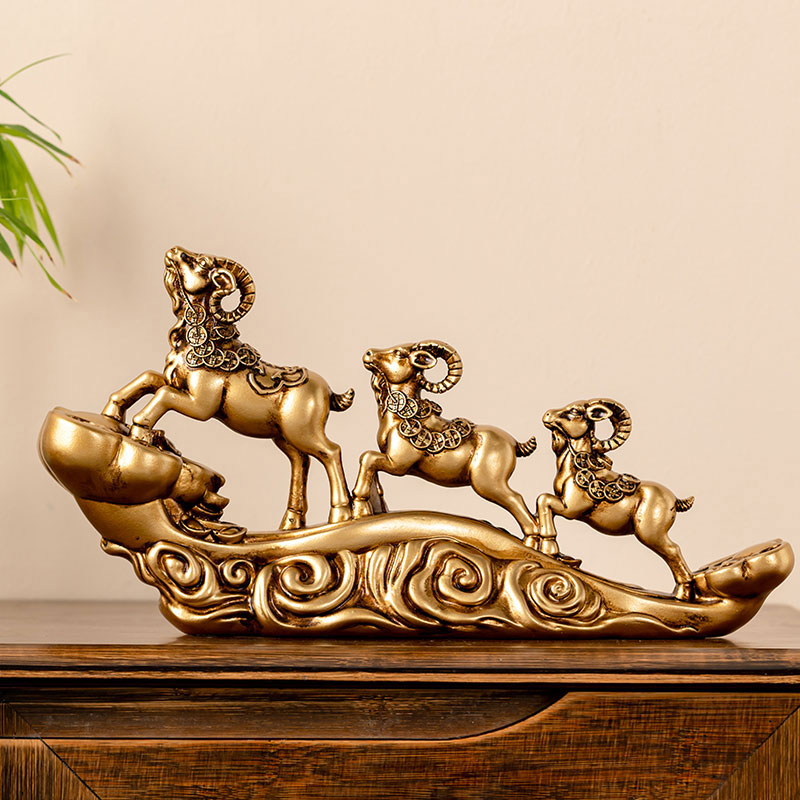 三羊开泰生肖羊招财工艺品小摆件创意客厅玄关酒柜家居装饰品礼物