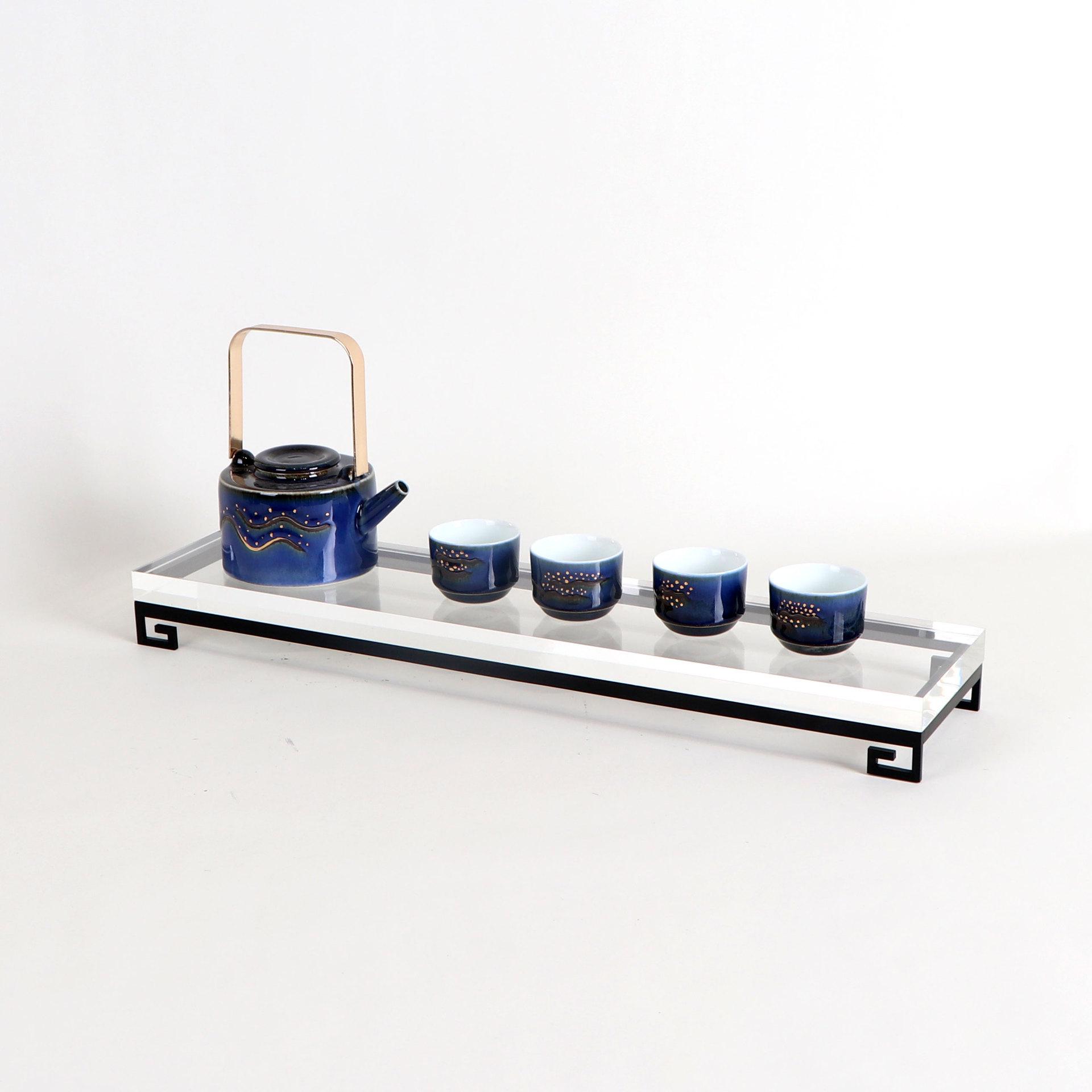 现代新中式样板间亚克力长方形酒柜饰品茶托金属展示托盘软装摆件