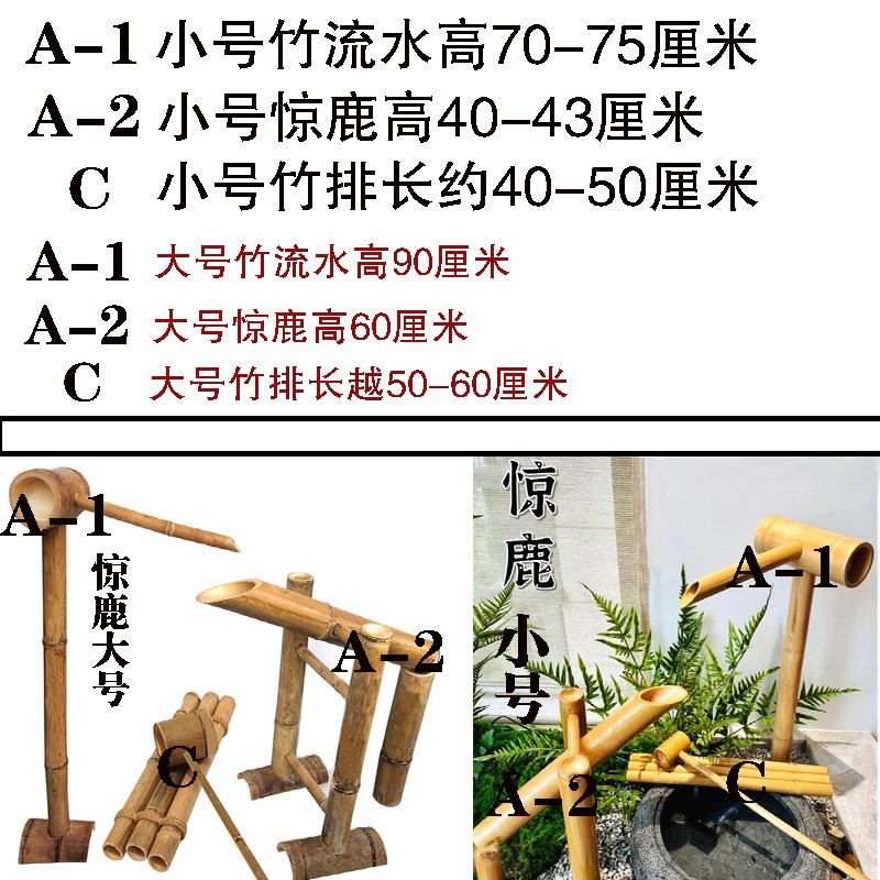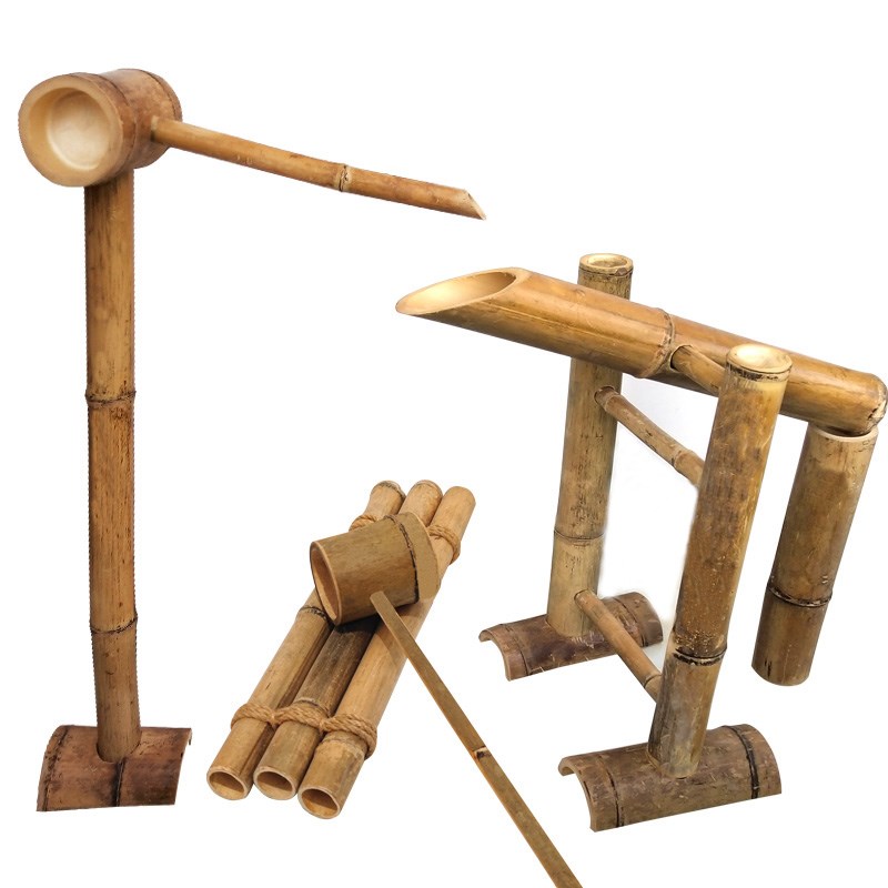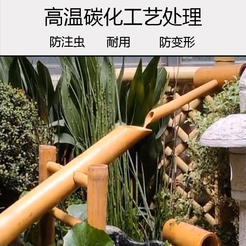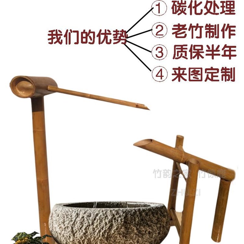 庭院流水器日式竹筒底座石u头户外鱼缸落地小院水系造景观流水摆