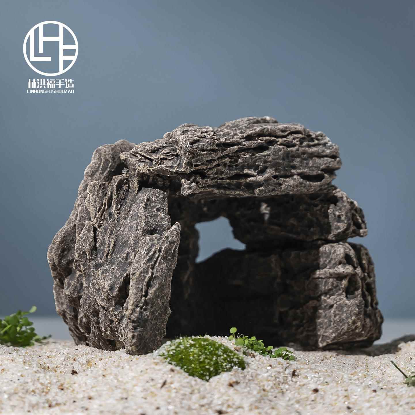陶瓷工艺鱼缸造景石装饰摆件假山流水水族布景吸水躲避石乌龟晒台
