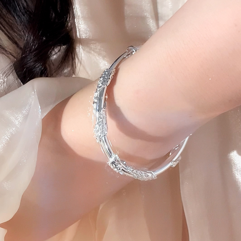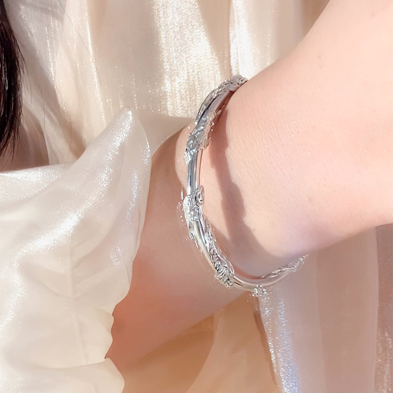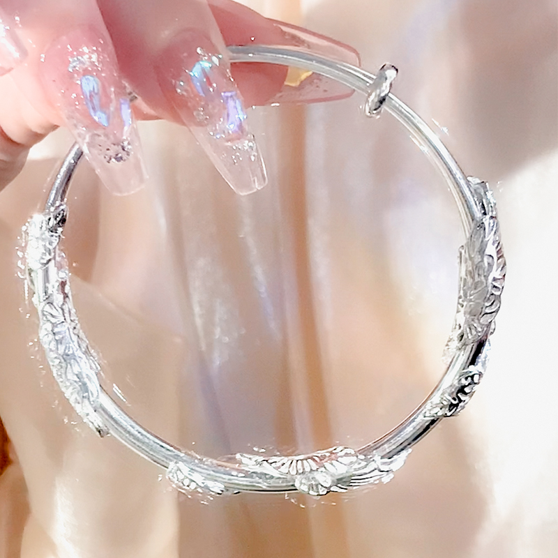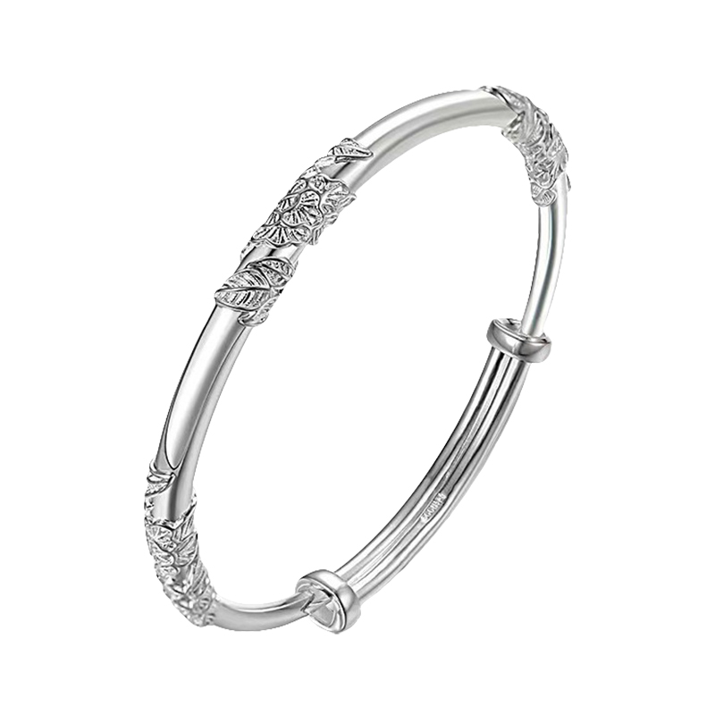铜镀银手镯女繁花手镯推拉式素圈银镯子相思藤银手环串手饰品新款