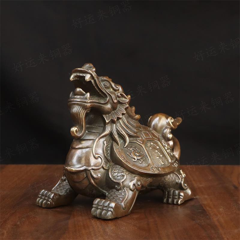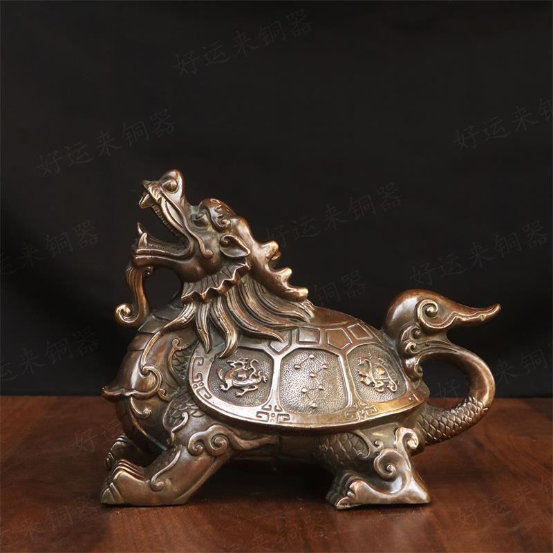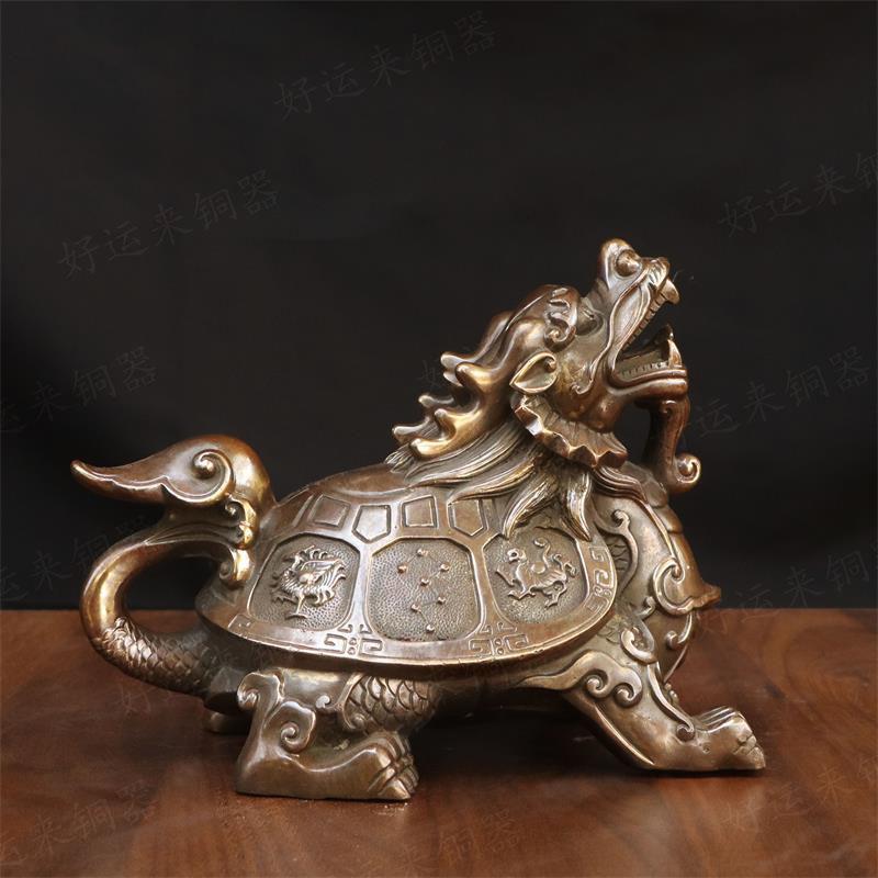 纯黄铜四象龙头龟乌龟祥瑞摆件家用客厅神兽铜龙龟瑞兽工艺品摆设