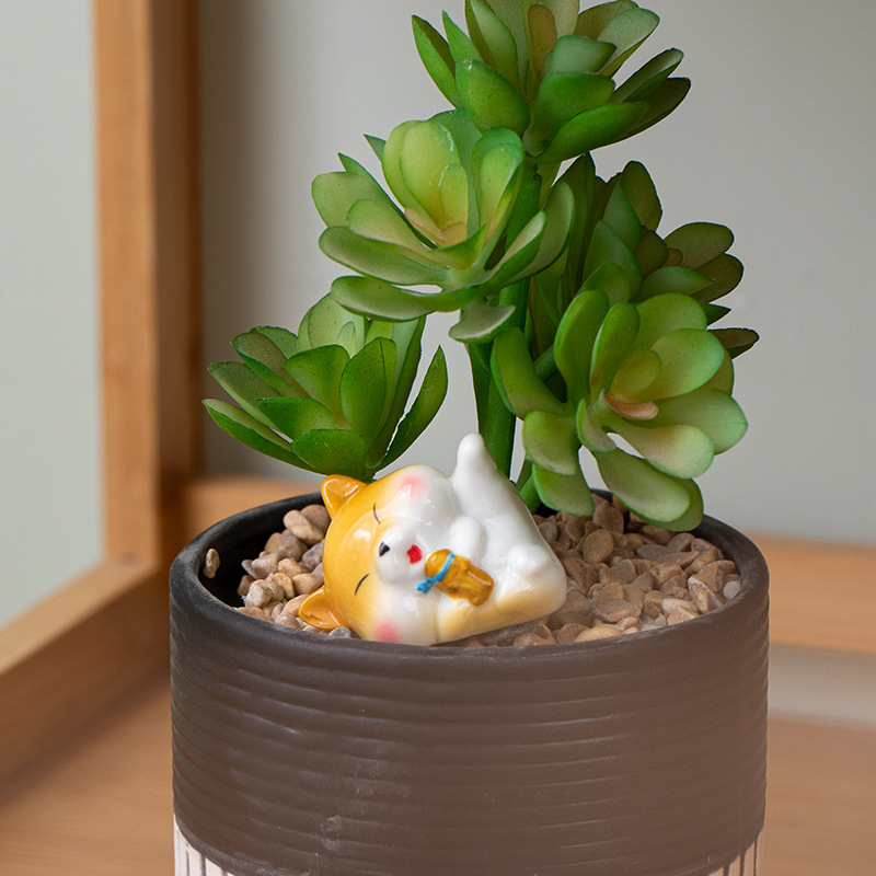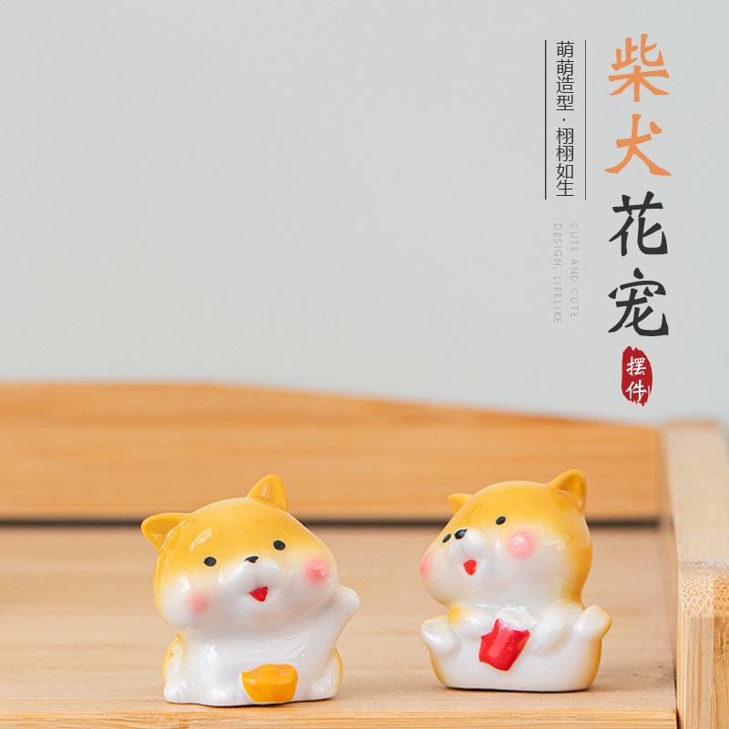 陶瓷可爱卡通柴犬兔子小摆件多肉盆景摆件花宠桌面装饰迷你小摆件