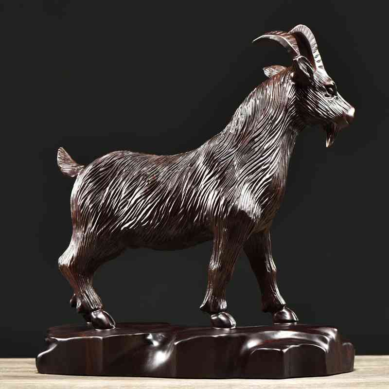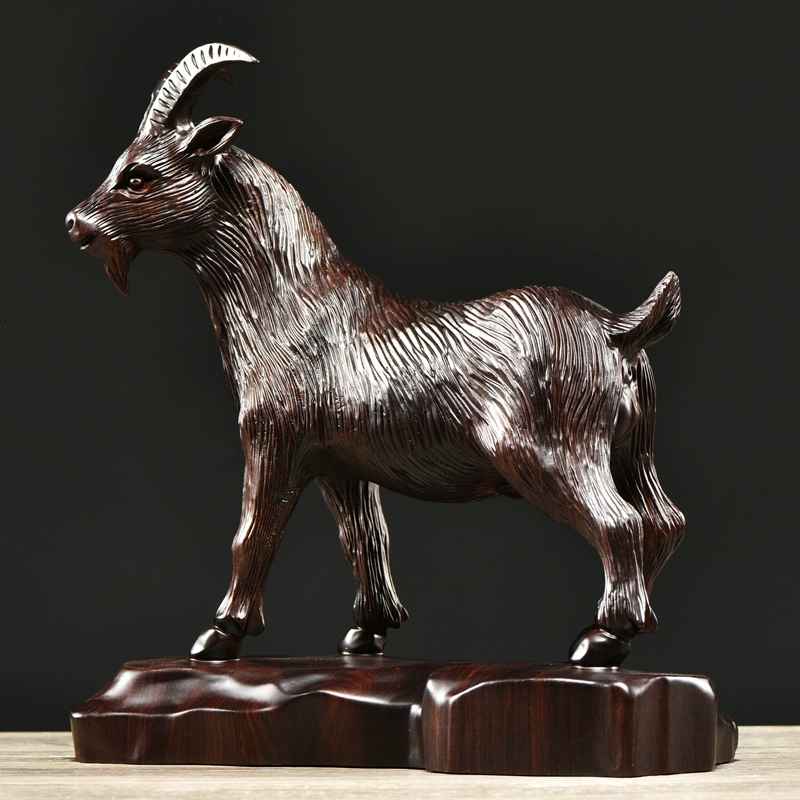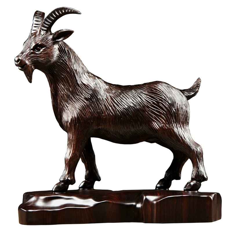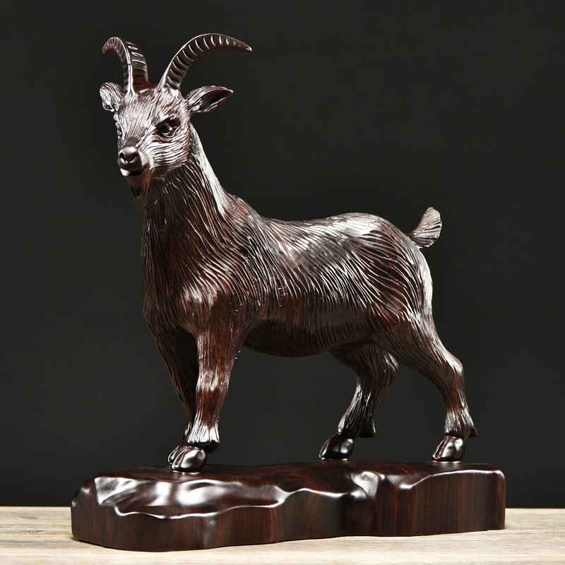 黑檀木雕生肖山羊摆件实木质雕刻动物领头羊家居办公装饰乔迁礼品