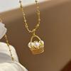 中古风古法立体编织篮仿施家珍珠项链满钻气质精致锁骨链招财篮子