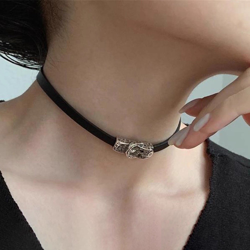 小众极简黑色皮带扣颈圈项链女甜酷日常百搭choker短款锁骨链颈链