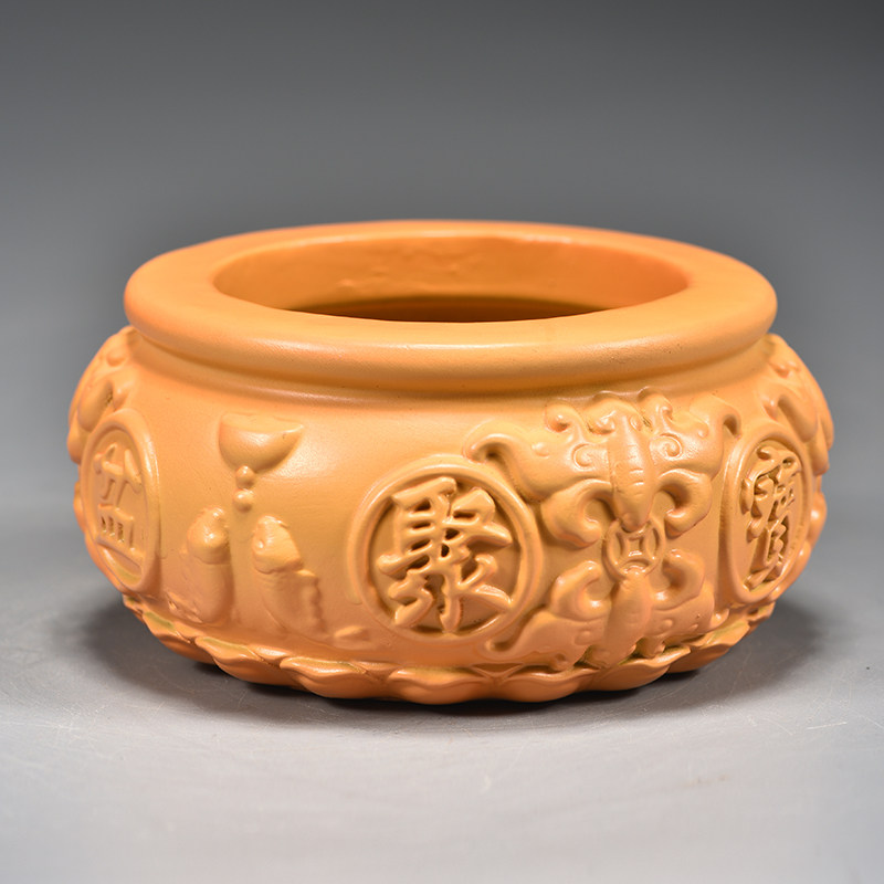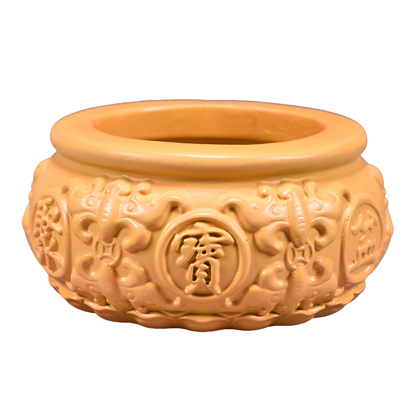 实木雕刻黄色聚宝盆摆件乔迁家居客厅木质装饰开业送礼红木工艺品