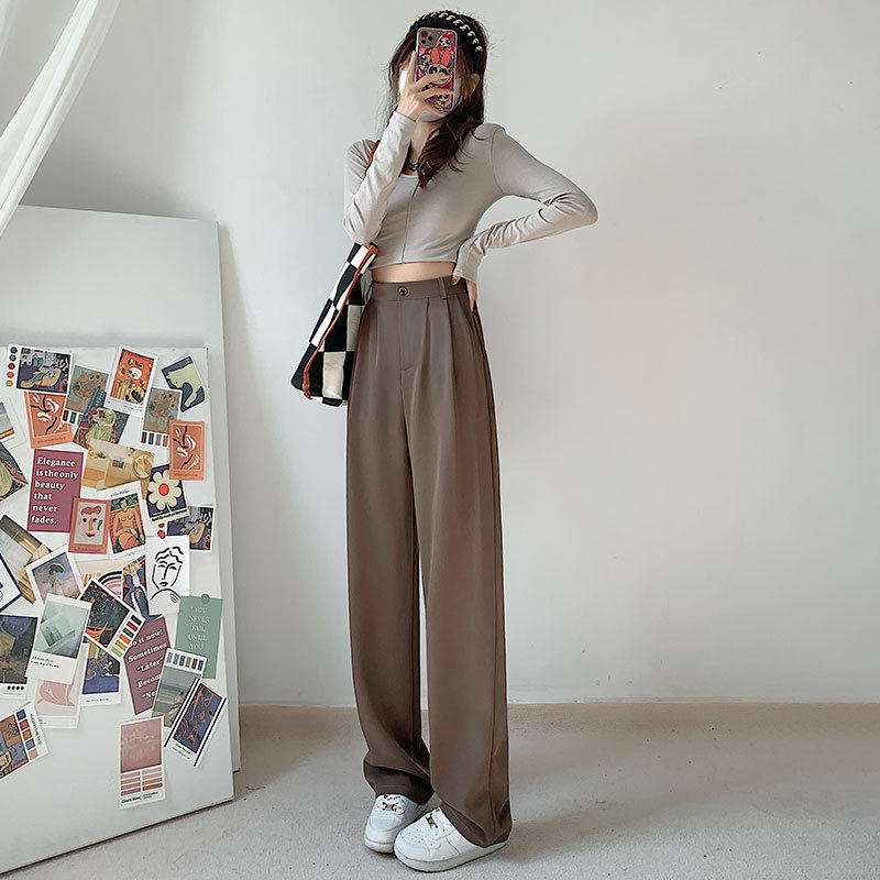 阔腿裤女2025早秋高腰垂感拖地显瘦直筒裤休闲小个子西装裤高级感
