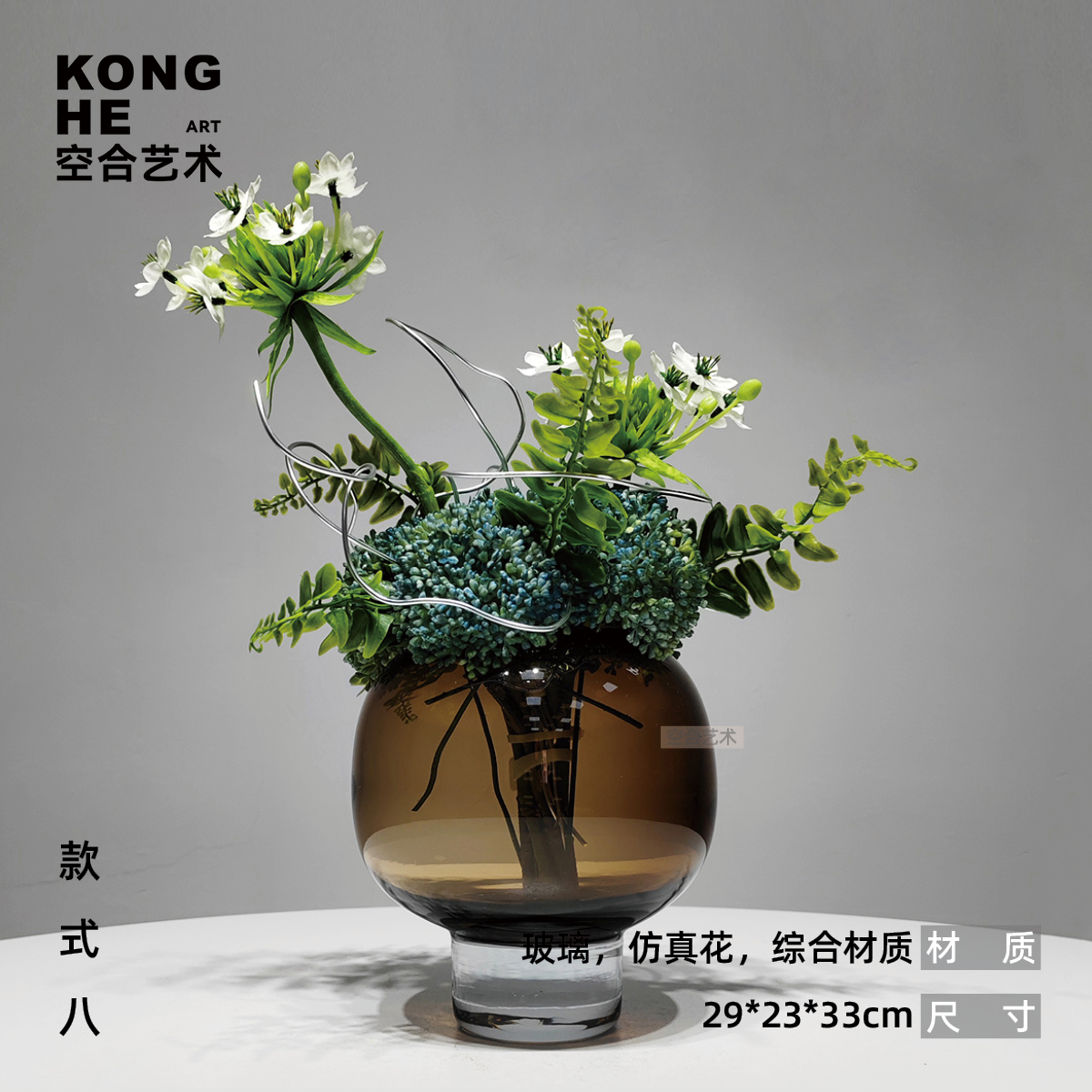 空合 现代仿真小绿植花艺 洽谈桌样板房茶几餐桌面软装创意摆件