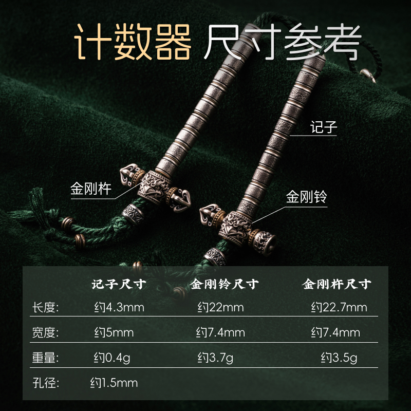 大鹏鸟计数器丨琢匠原创S925银藏传文玩记数金刚铃杵手串挂件配饰