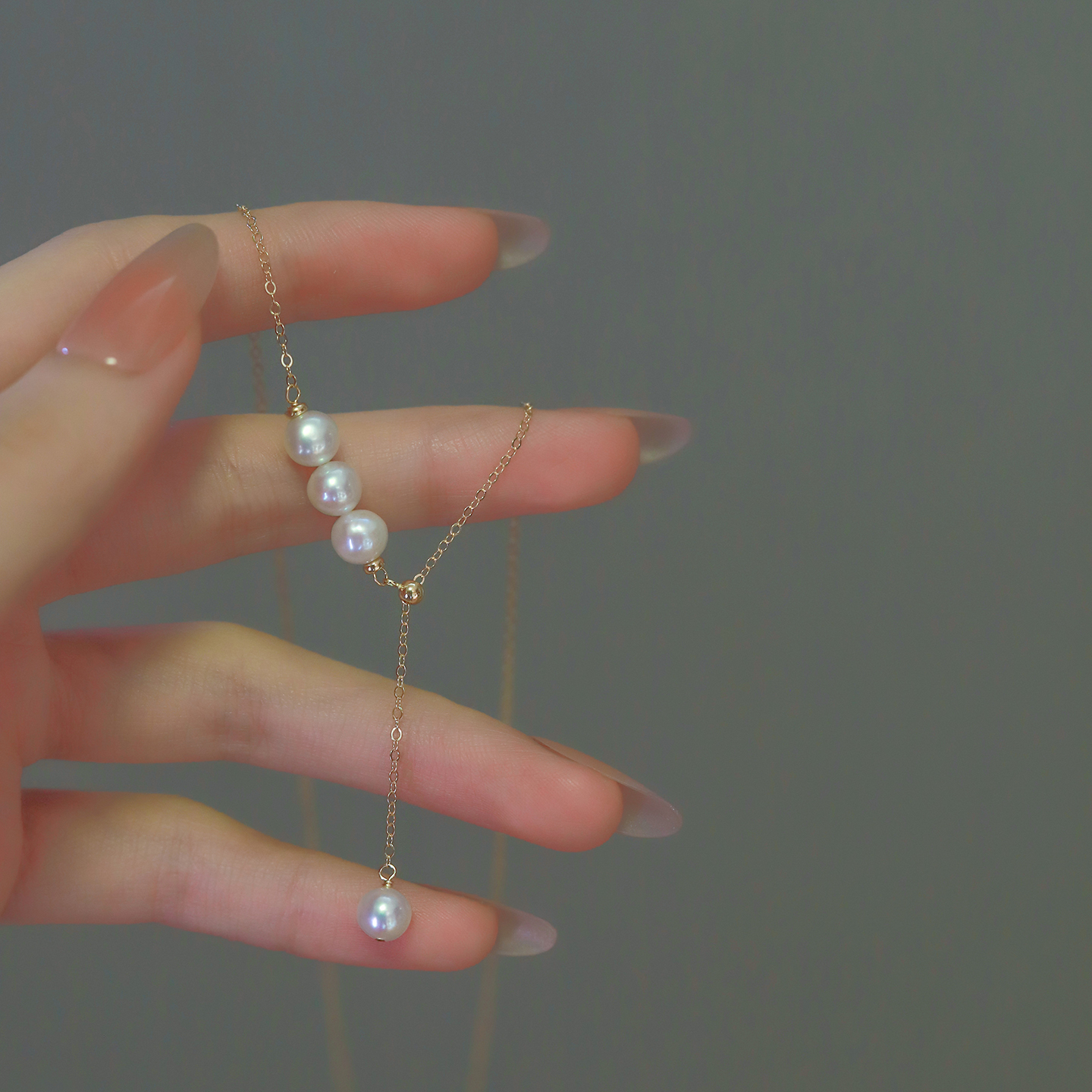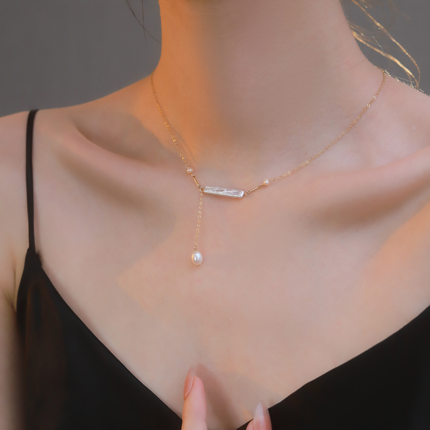 微笑方糖平衡木天然淡水珍珠项链女AK小米珠美14K包金巴洛克吊坠