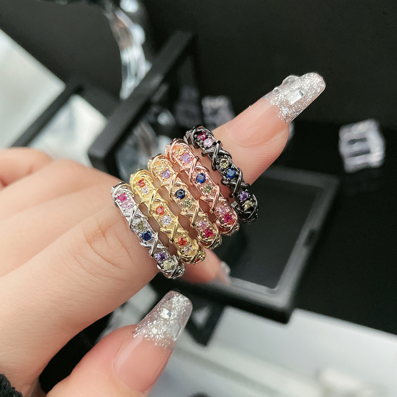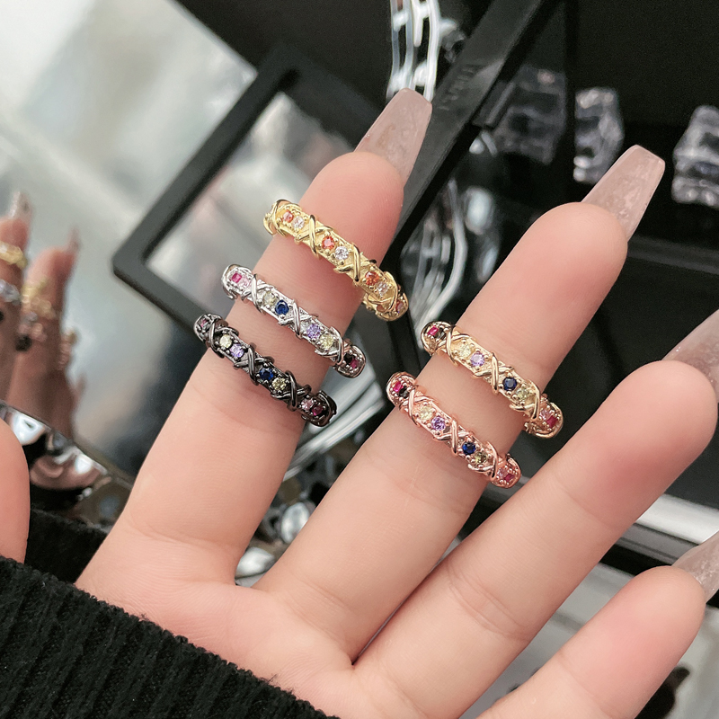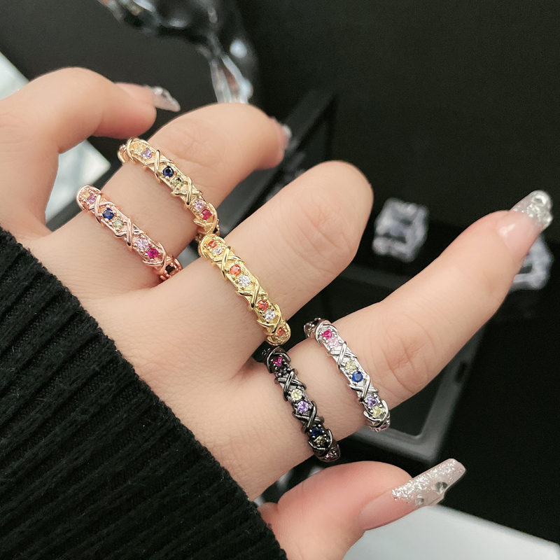 彩色多巴胺交叉开口戒指女小香风法式轻奢高级感个性冷淡风指环潮