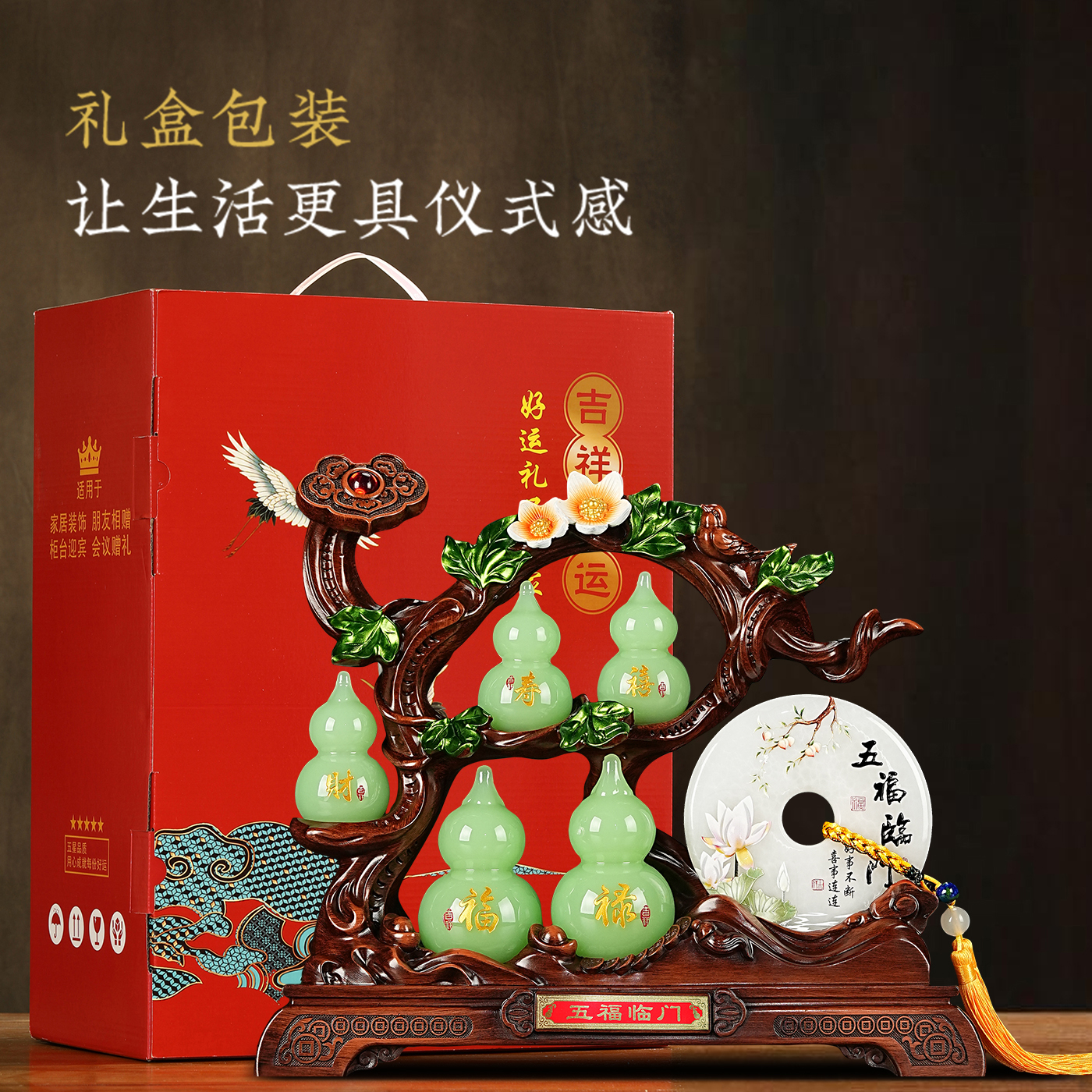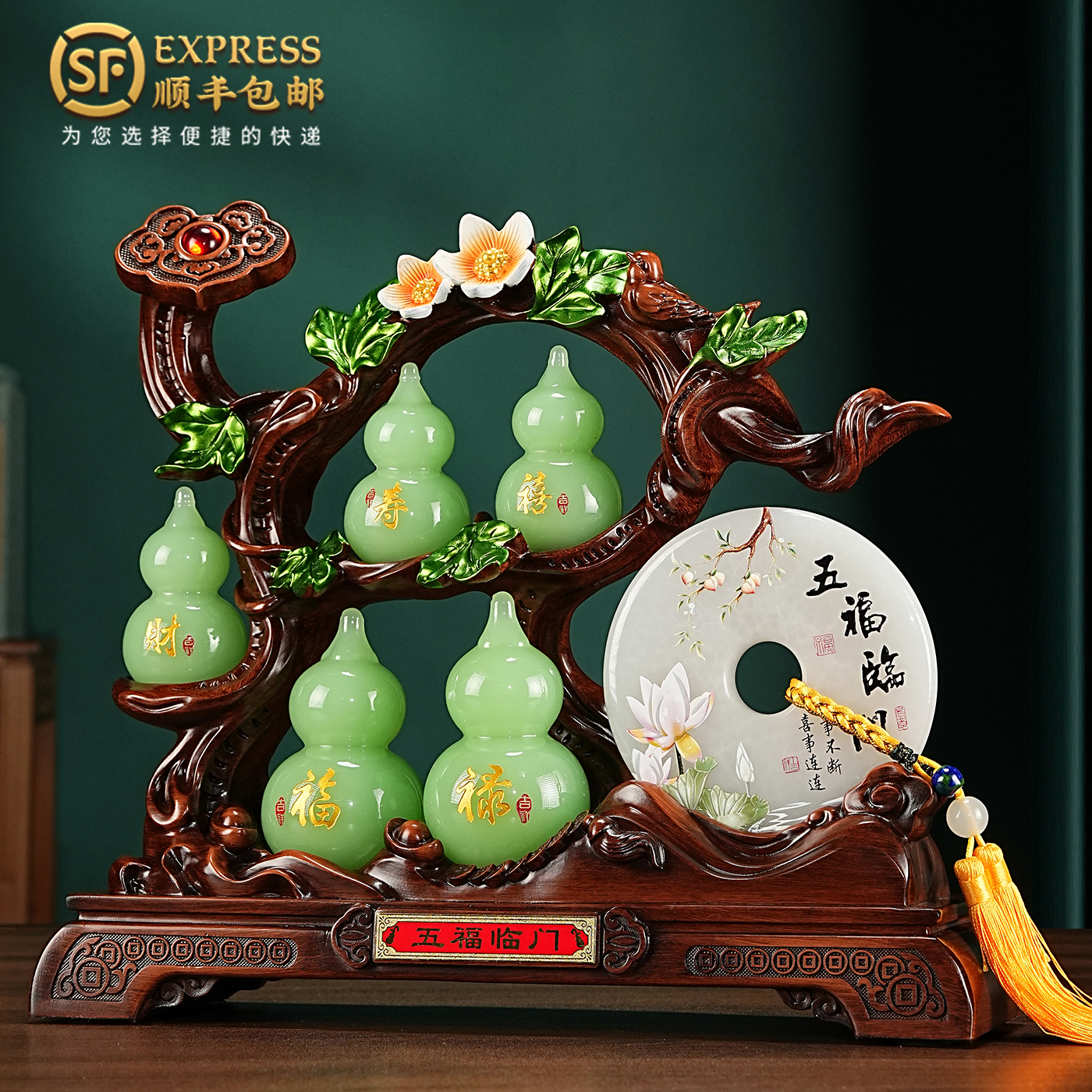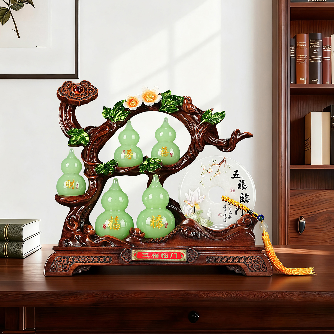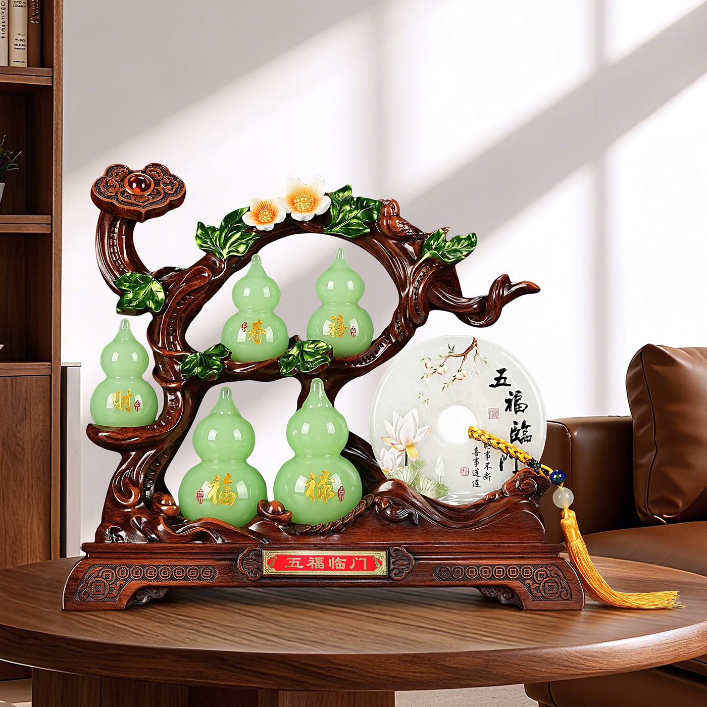 五福临门葫芦摆件玉石平安扣客厅玄关酒柜装饰品高档乔迁新居礼物