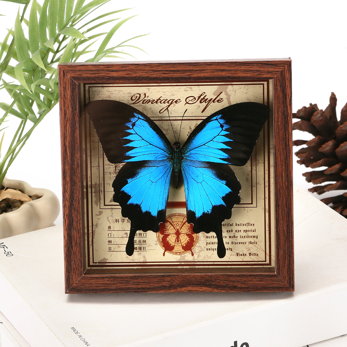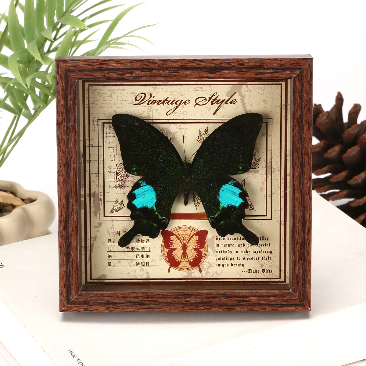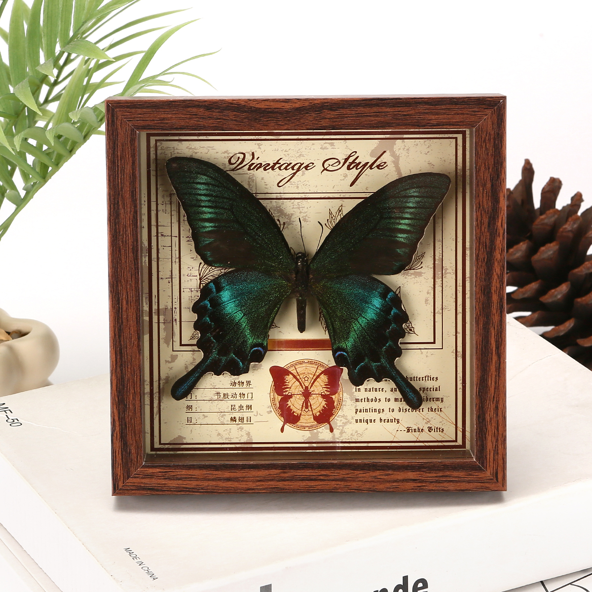 天堂翠凤蝶标本相框真蝴蝶DIY摆台装饰生日礼物礼品桌面绿带动物