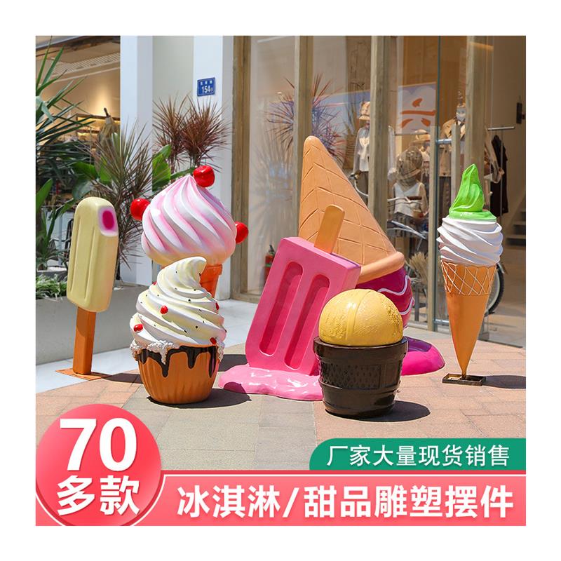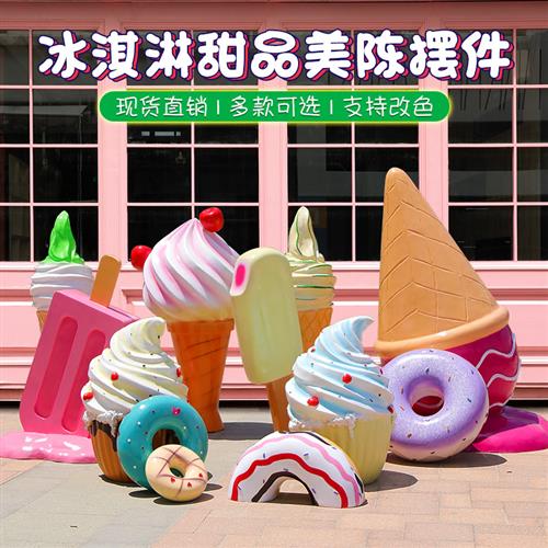 户外仿真冰淇淋雪糕甜筒玻璃钢雕塑甜品店铺美陈甜甜圈马卡龙摆件