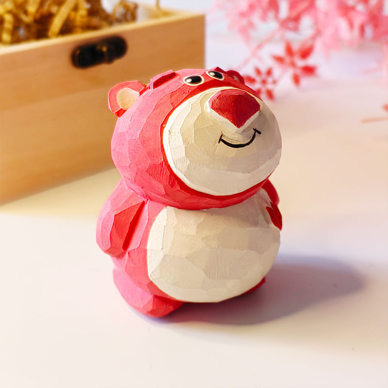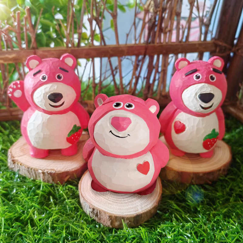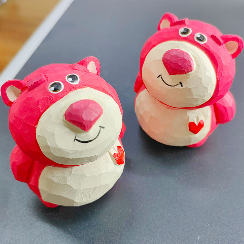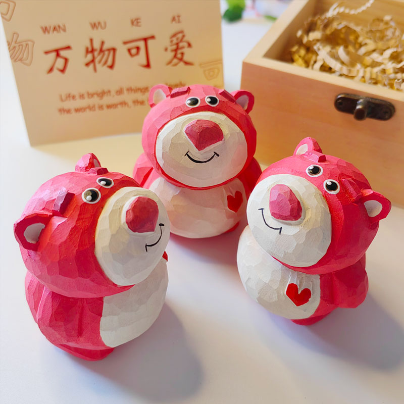 草莓熊纯手工实木雕刻办公室桌面摆件治愈系送朋友创意礼品卡通