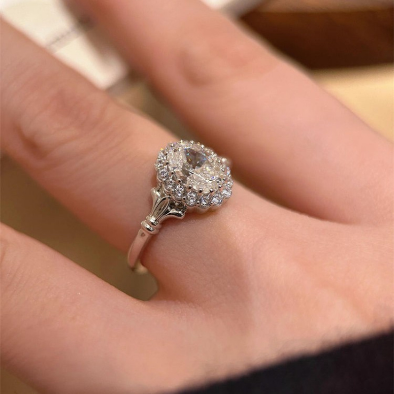 新款手捧花鸽子蛋戒指轻奢爆闪满钻食指戒送女友