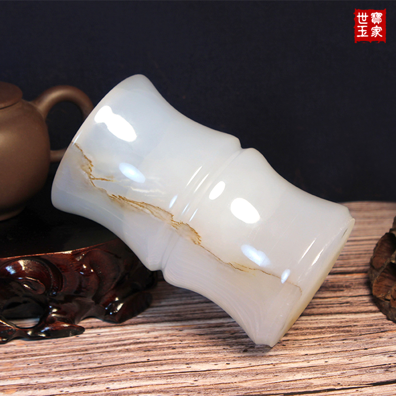 天然玉石笔筒竹节筒装饰摆件 客厅书房办公室小花瓶装饰送礼佳品